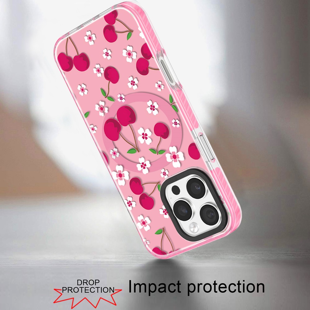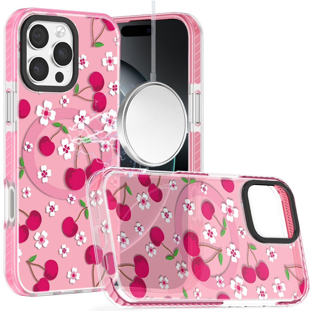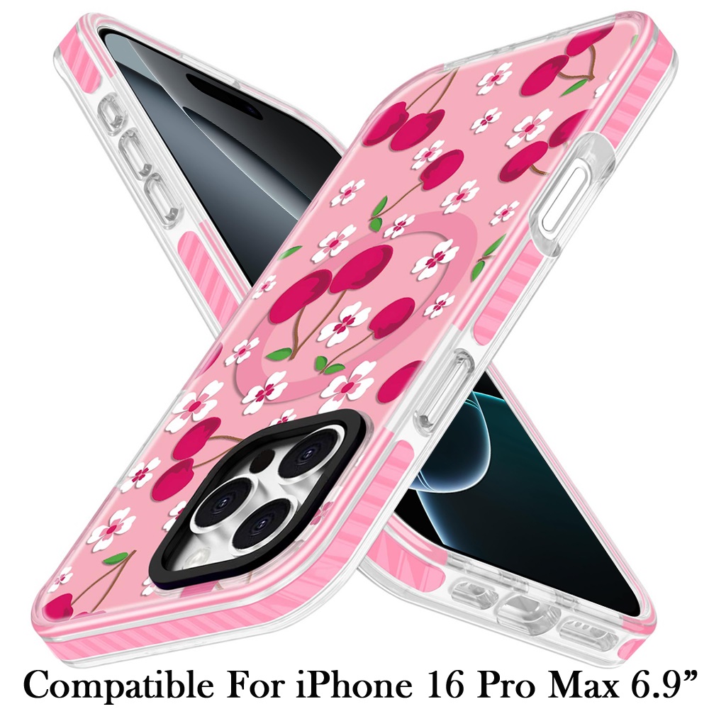 For iPhone 16 Pro Max 6.9 Beautiful Magnetic Hybrid IMD Design Case - Cherry Sprinkle on Pink