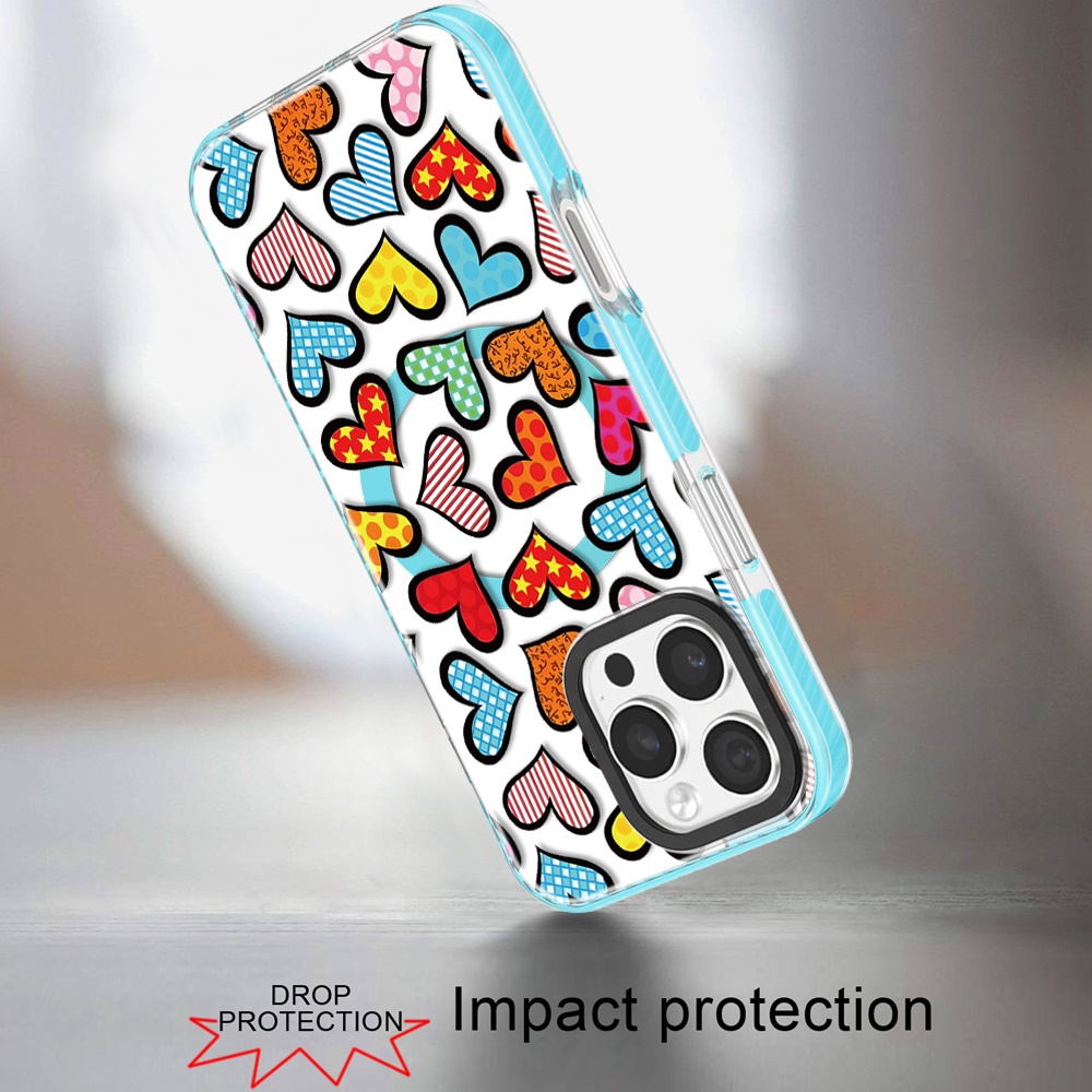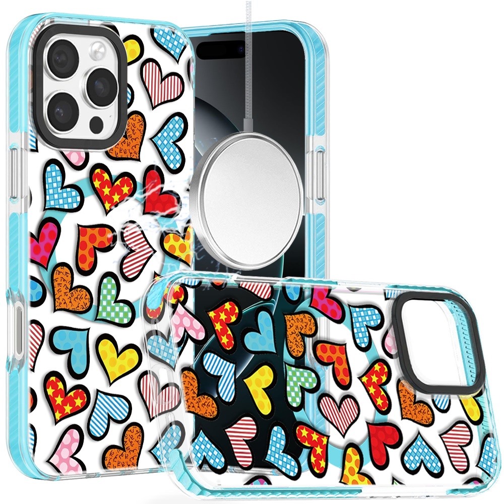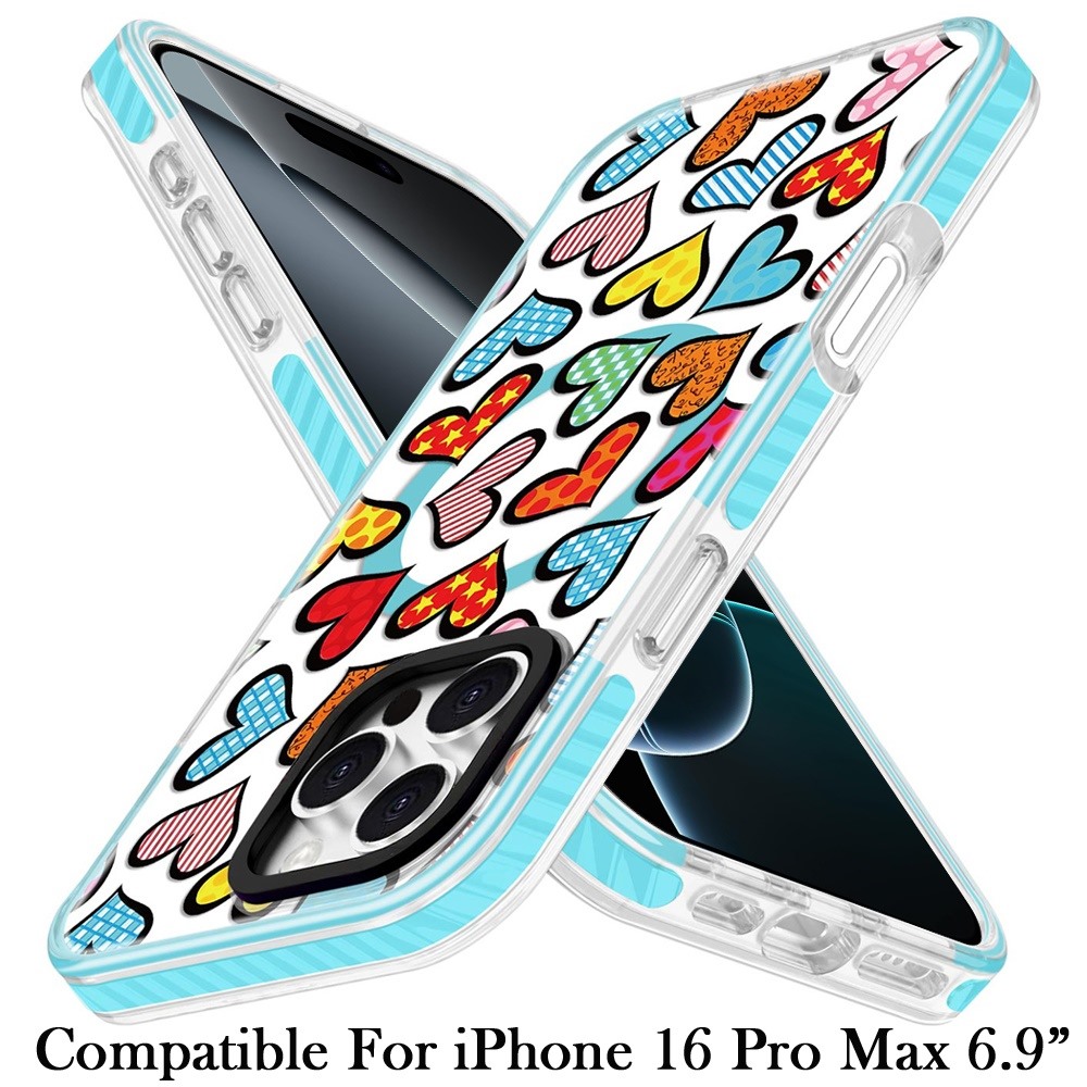 For iPhone 16 Pro Max 6.9 Beautiful Magnetic Hybrid IMD Design Case - Colorful Scribble Hearts