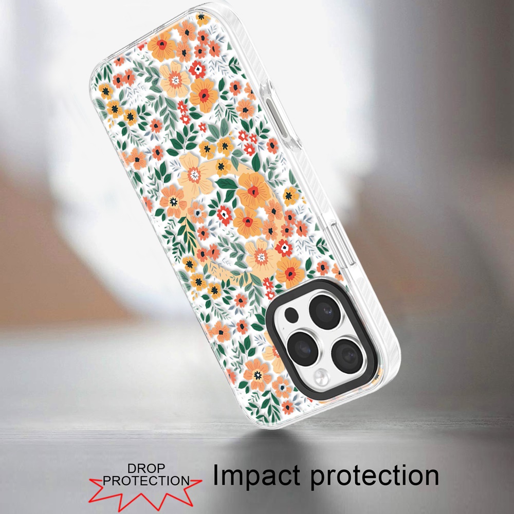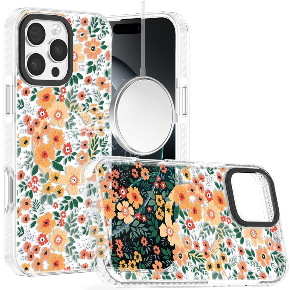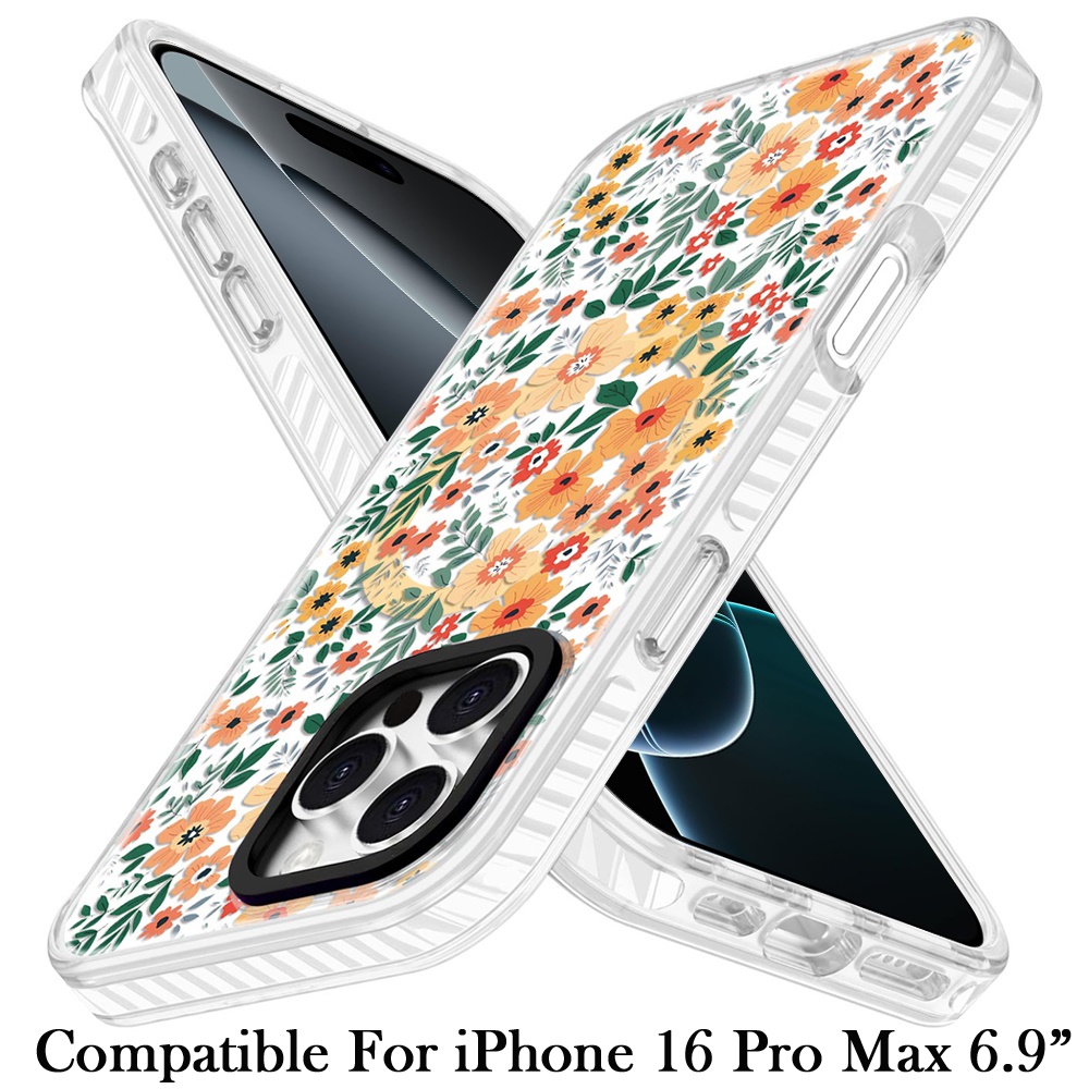 For iPhone 16 Pro Max 6.9 Beautiful Magnetic Hybrid IMD Design Case - Delicate Orange White Florals