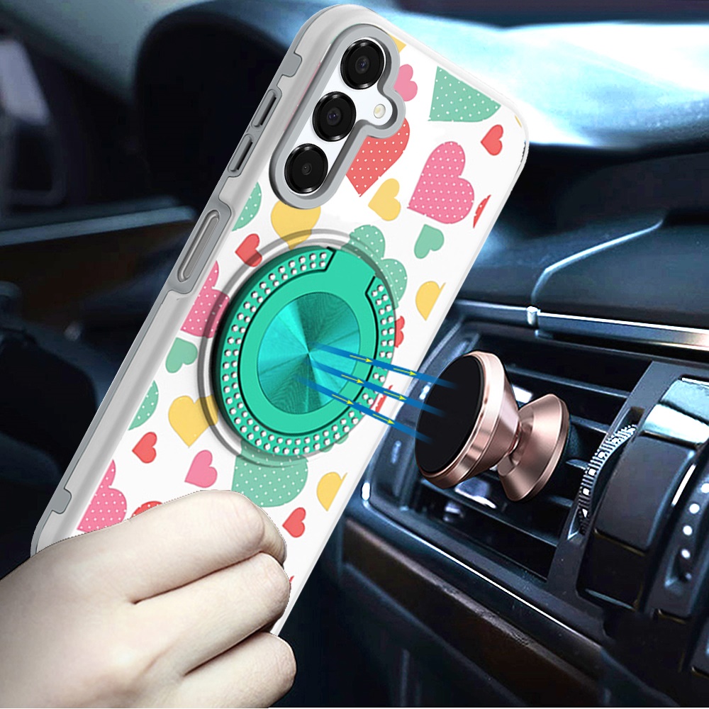 For Samsung A16 5G Metal Diamond CD Pattern Design Matte Finished Hybrid with Rotational Ring [Car Mount Friendly] Case - Pastel Hearts