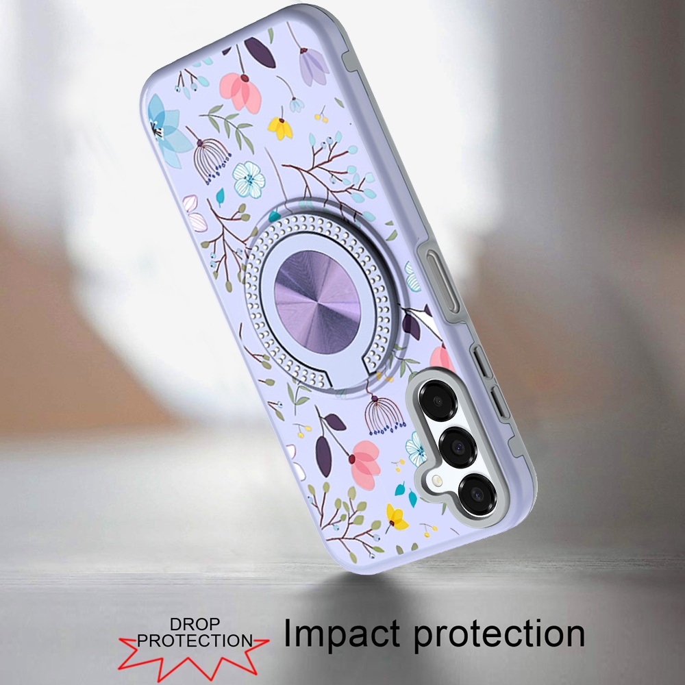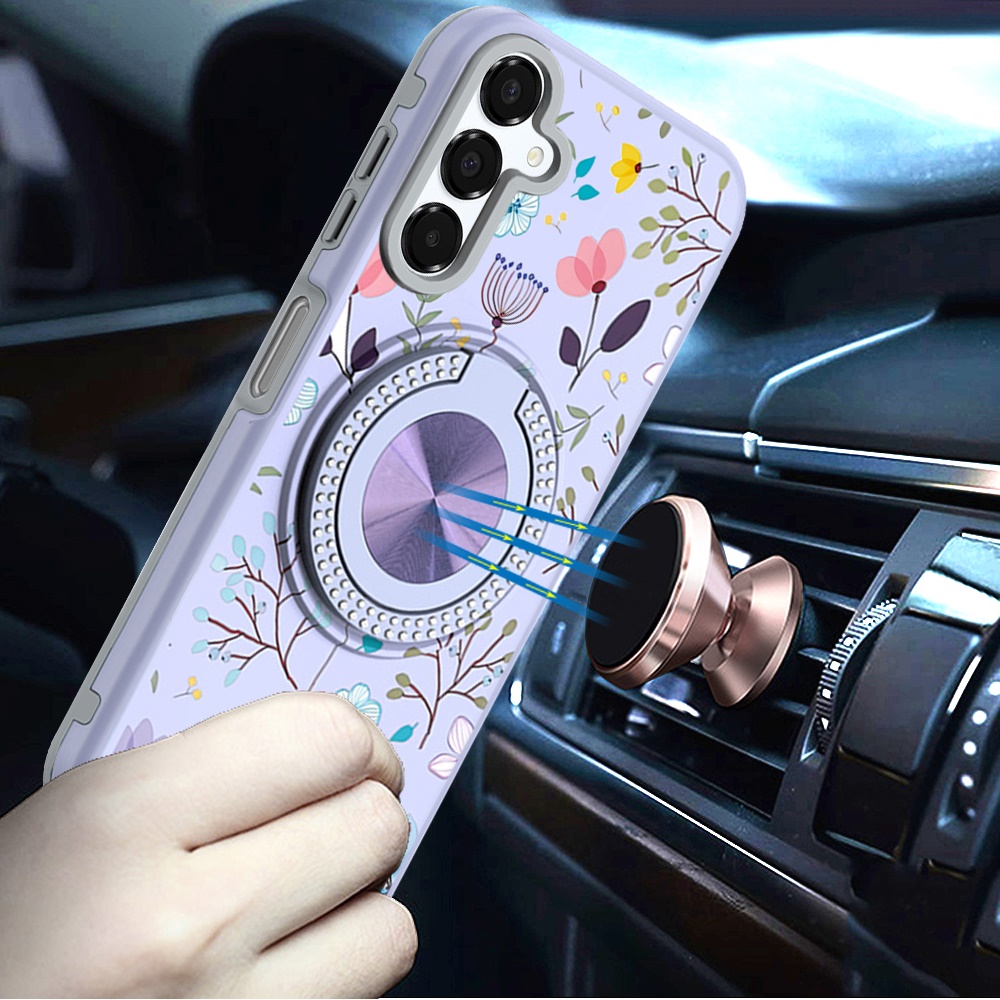 For Samsung A16 5G Metal Diamond CD Pattern Design Matte Finished Hybrid with Rotational Ring [Car Mount Friendly] Case - Lavender Floral