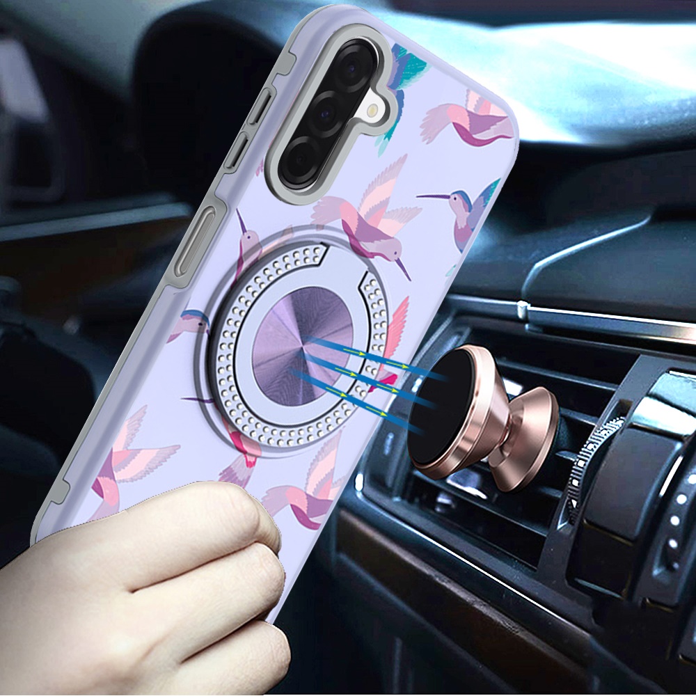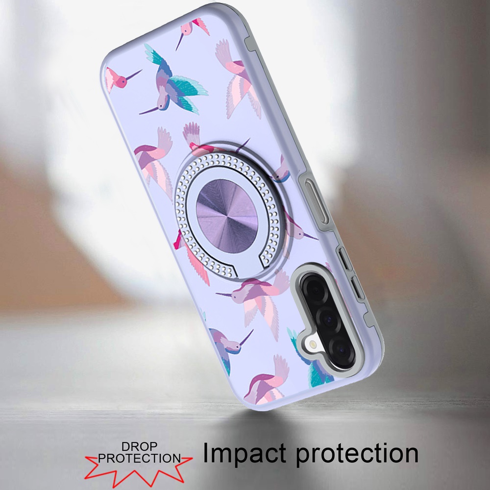 For Samsung A17 5G Metal Diamond CD Pattern Design Matte Finished Hybrid with Rotational Ring [Car Mount Friendly] Case - Hummingbird & Floral