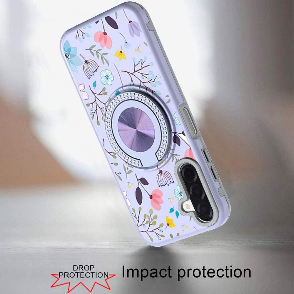 For Samsung A17 5G Metal Diamond CD Pattern Design Matte Finished Hybrid with Rotational Ring [Car Mount Friendly] Case - Lavender Floral