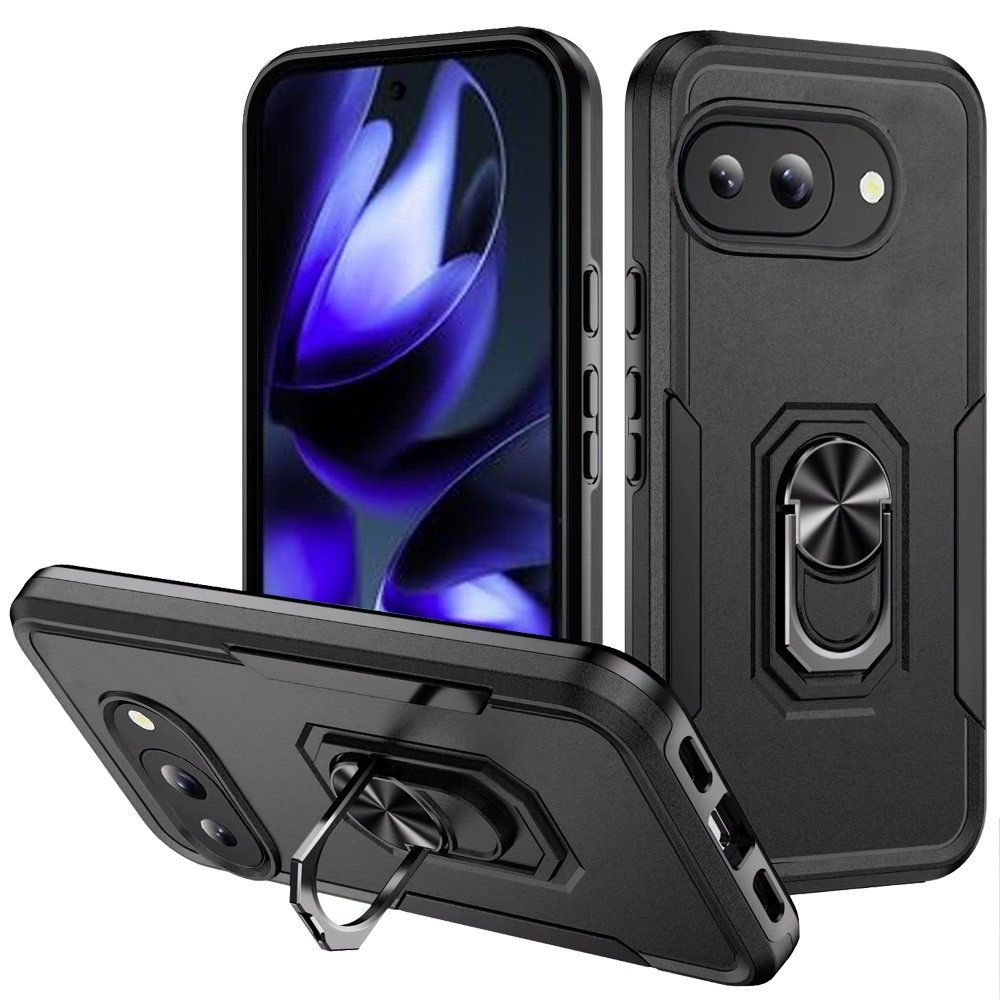 For Google Pixel 9A Tough Hybrid With Ring Stand Case - Black