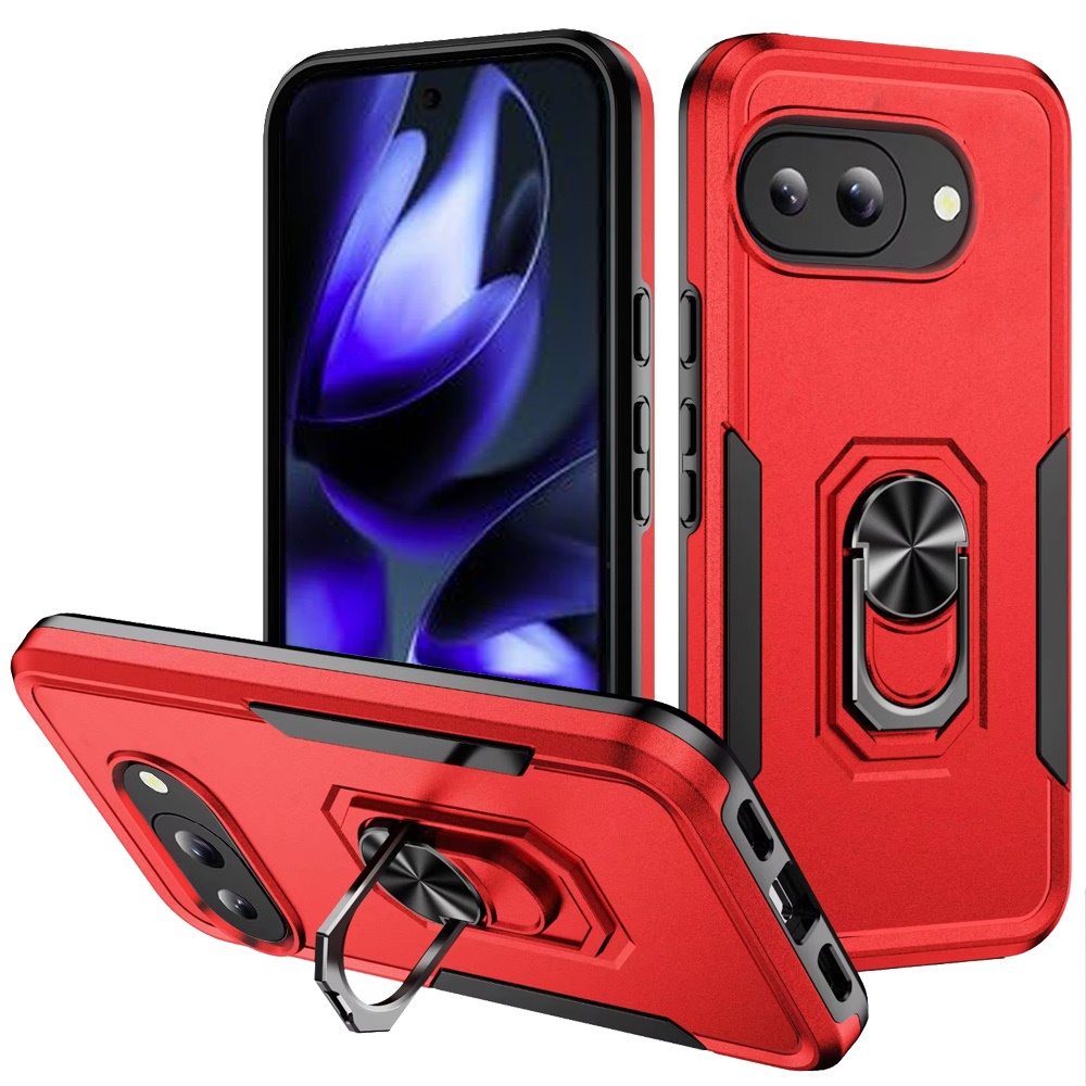 For Google Pixel 9A Tough Hybrid With Ring Stand Case - Red