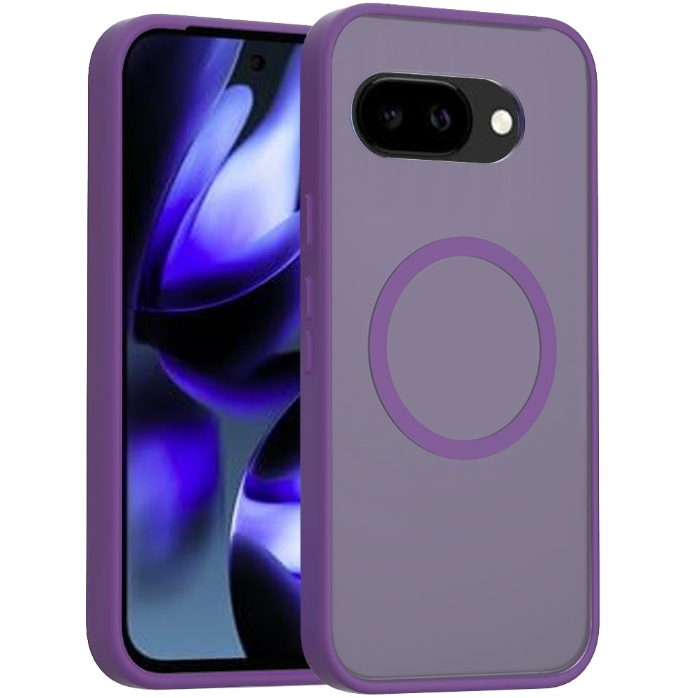 For Google Pixel 9A [Magnetic Circle] Smooth Safe Matte Feel Hybrid Case - Dark Purple