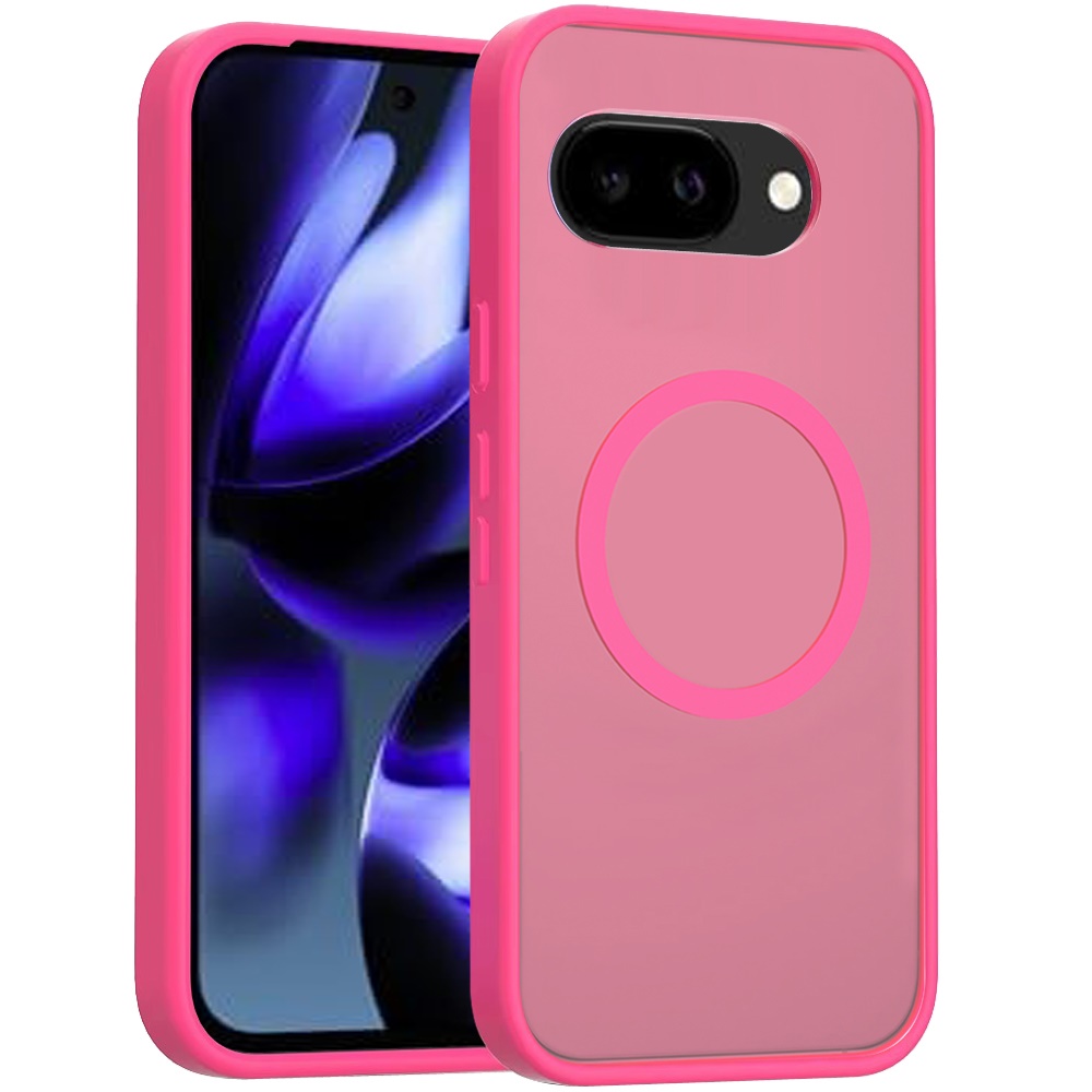 For Google Pixel 9A [Magnetic Circle] Smooth Safe Matte Feel Hybrid Case - Hot Pink