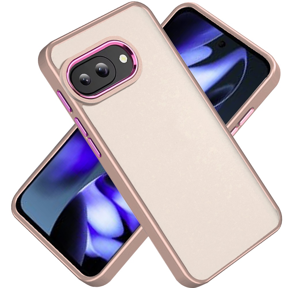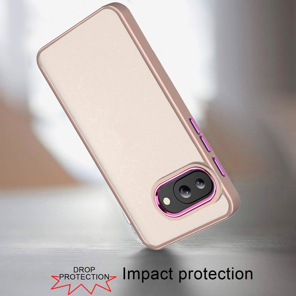 For Google Pixel 9A Polished Oil Thick Acrylic Metal Button Hybrid Case Cover - Beige