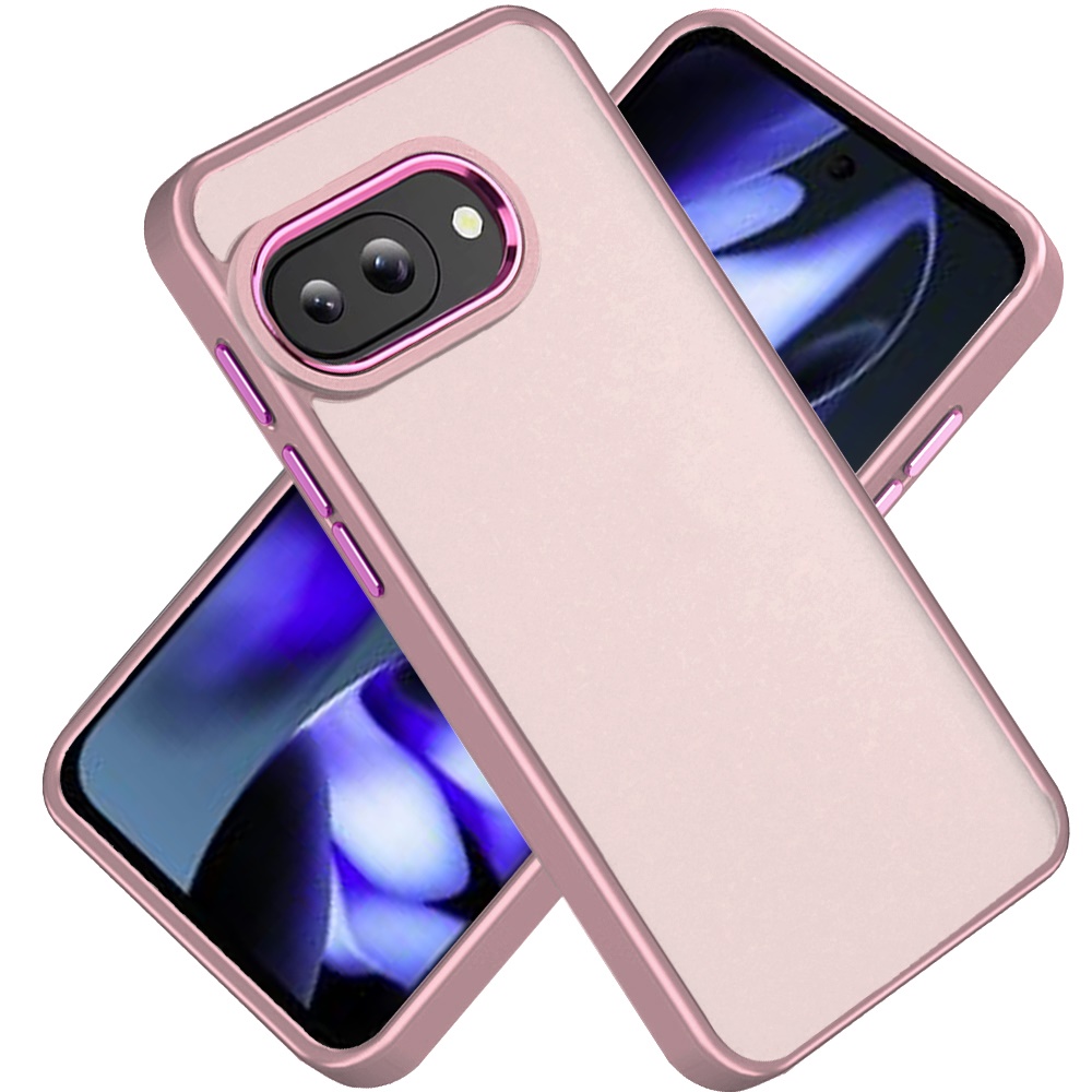 For Google Pixel 9A Polished Oil Thick Acrylic Metal Button Hybrid Case Cover - Light Pink