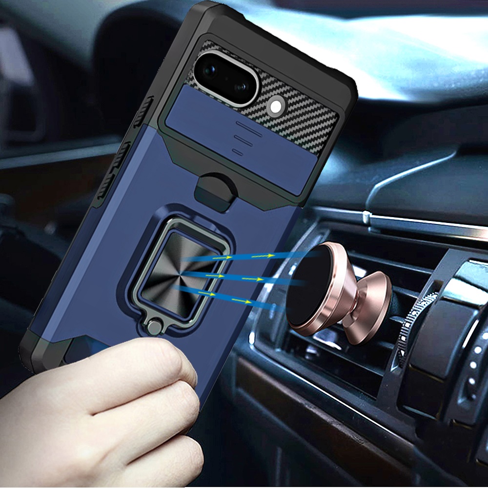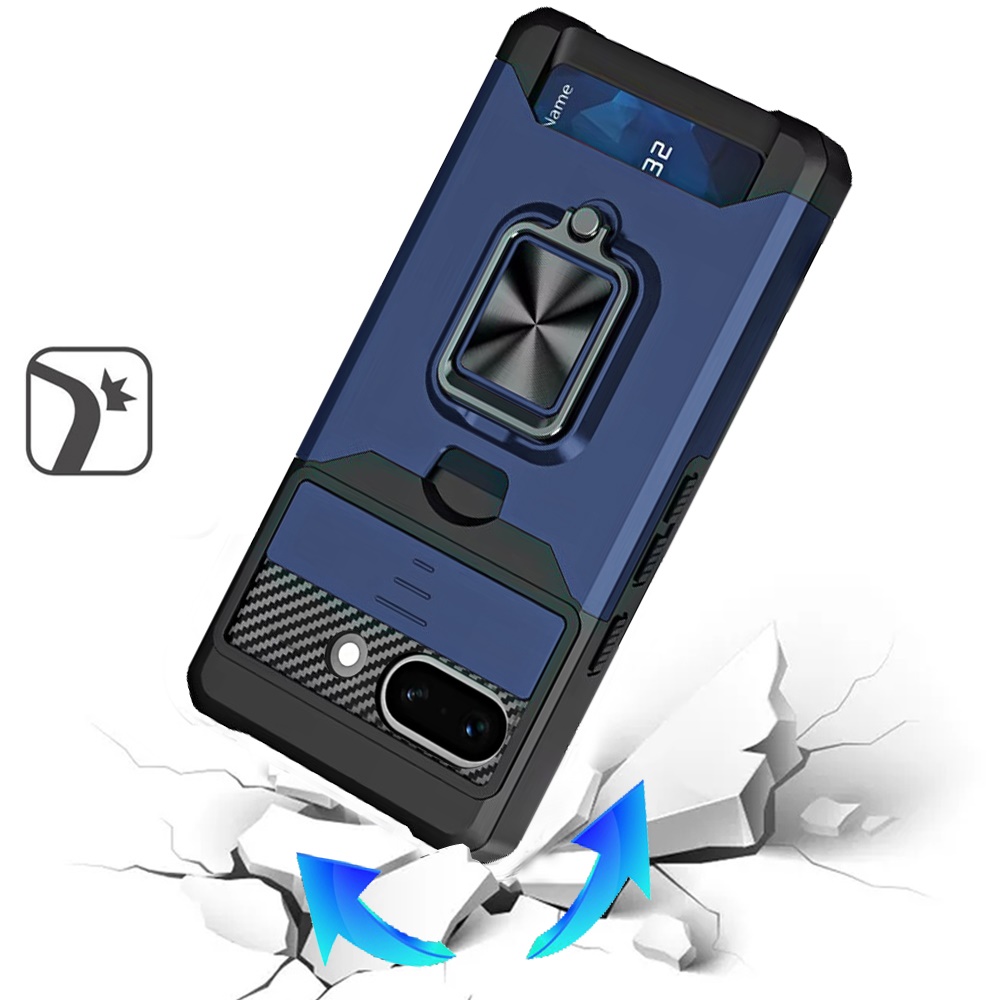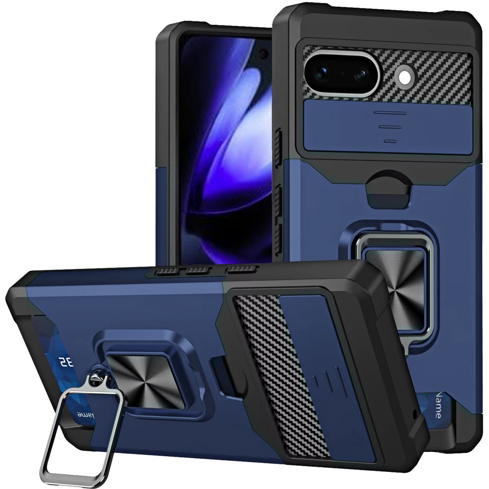 For Google Pixel 9A Multi-Functional Card Magnetic Ring Stand Hybrid Camera Case Cover - Blue