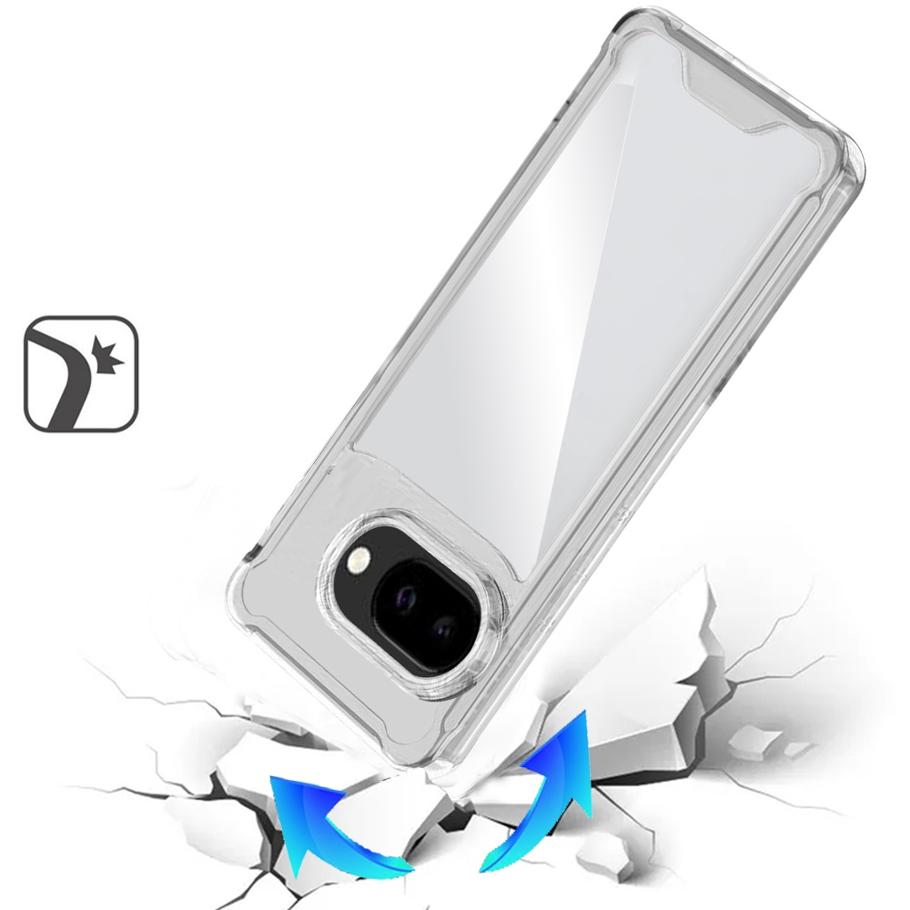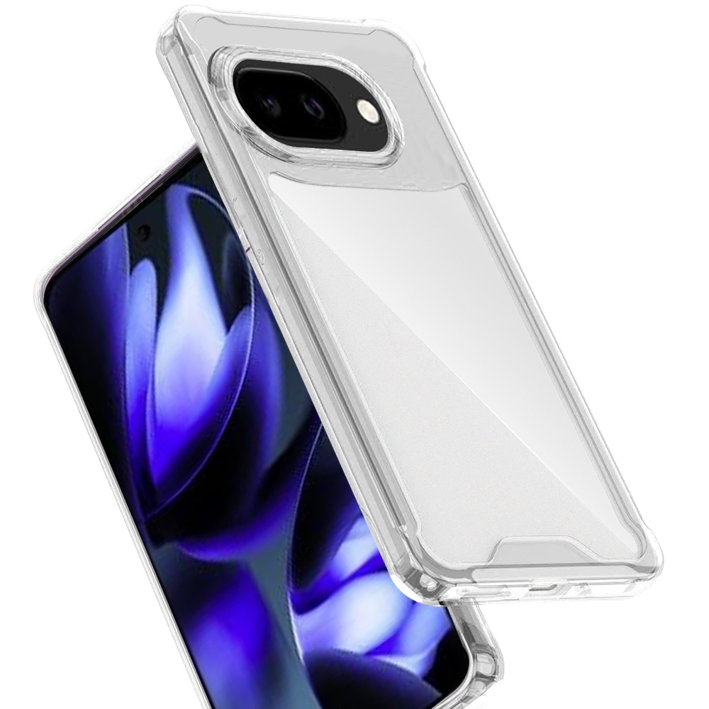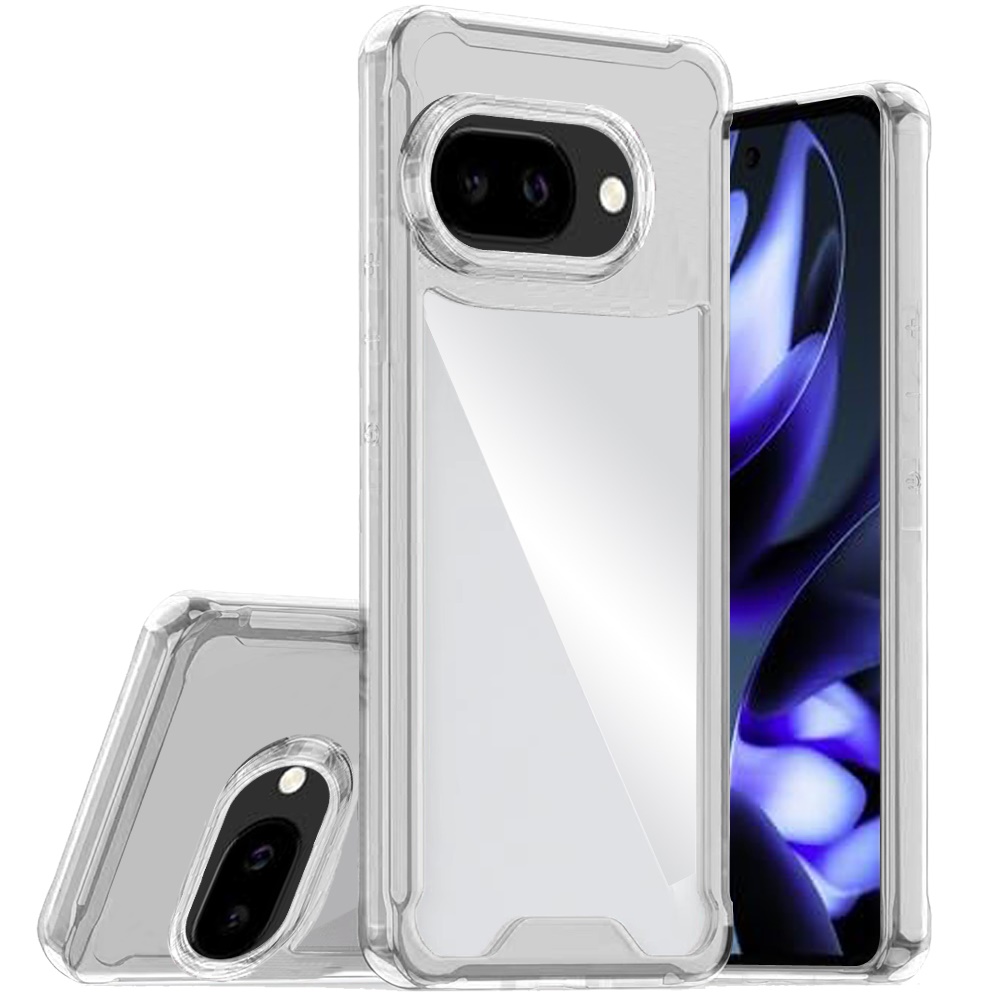 For Google Pixel 9A Colored Shockproof Transparent Hard PC TPU Hybrid Case Cover - Clear/Clear