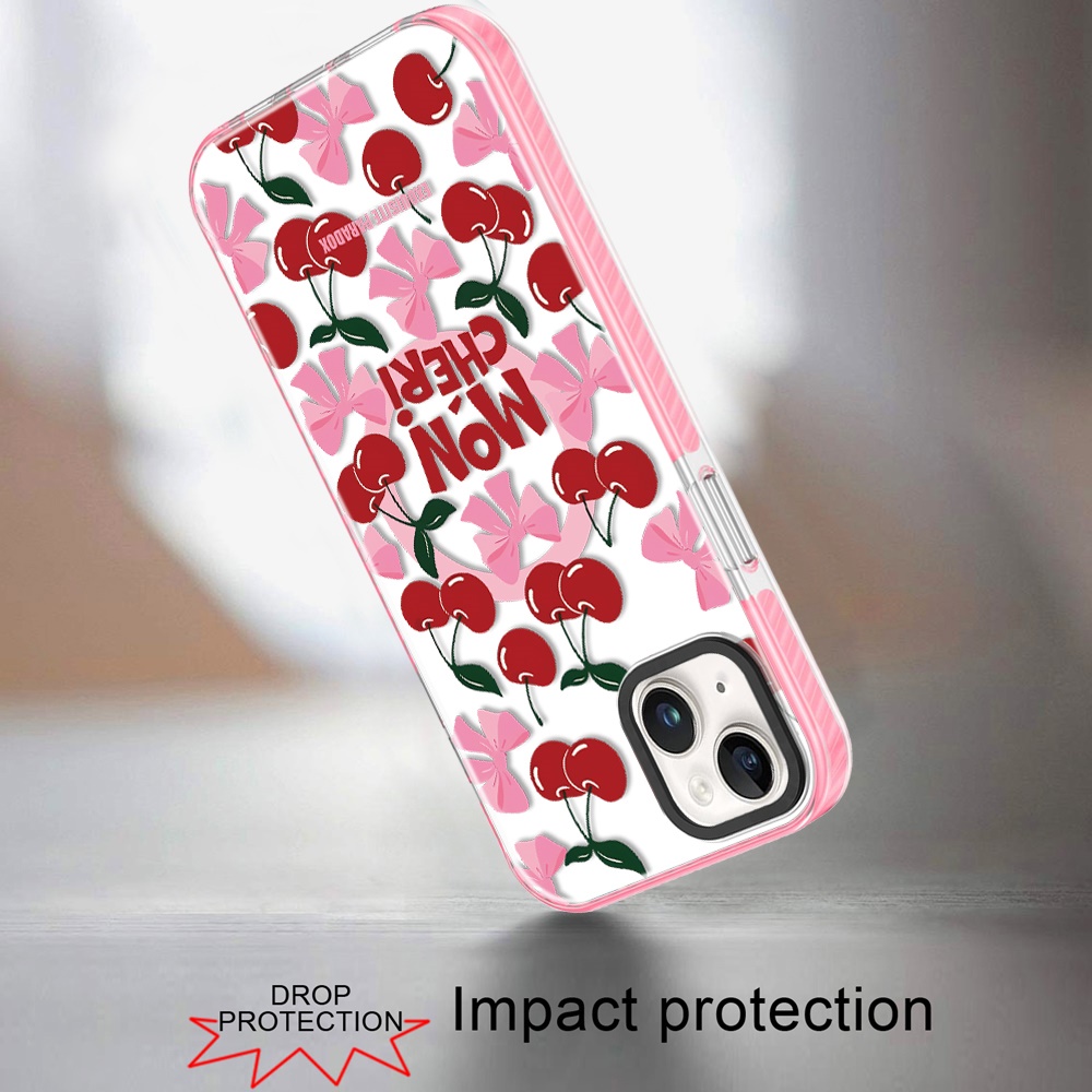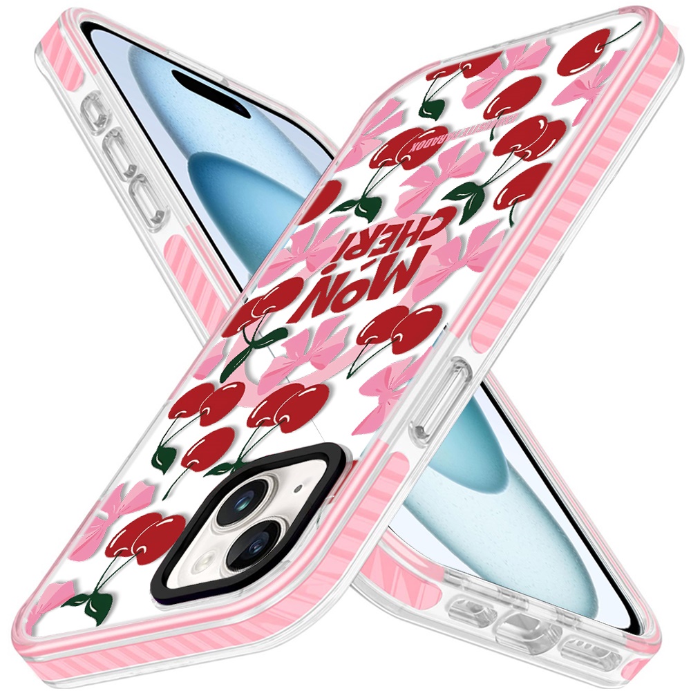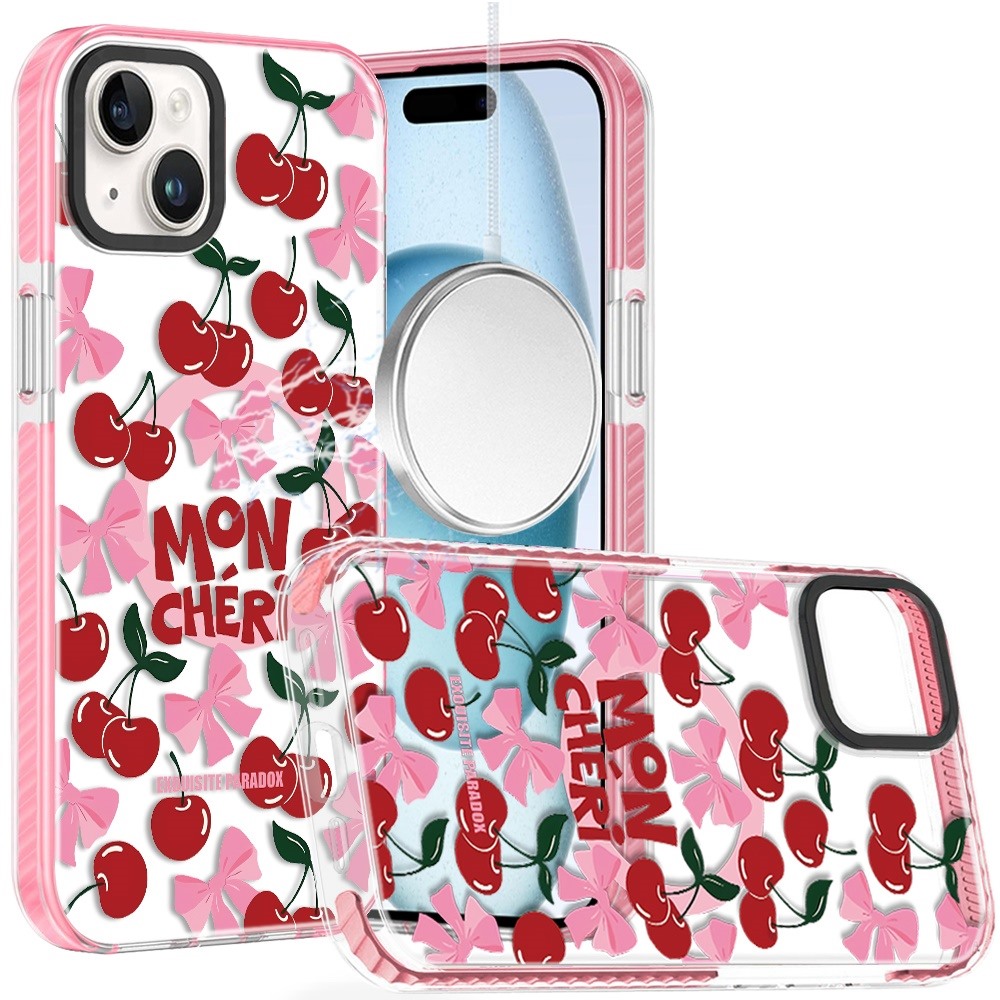 For iPhone 15 Beautiful Magnetic Hybrid IMD Design Case - Red Cherries