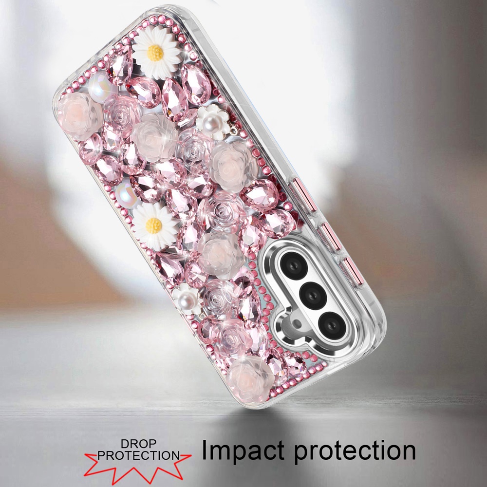 For Samsung s25 FE Spectacular Full Bling Stones Glitter HQ Hybrid Floral Series - Pink