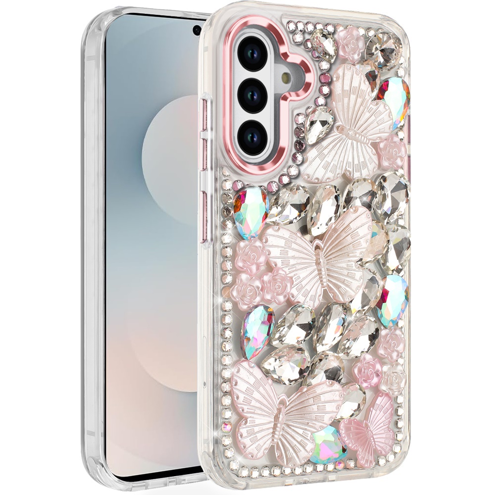 For Samsung s25 FE Lavished Floral Butterfly Bling Stones Hybrid Case - Pink
