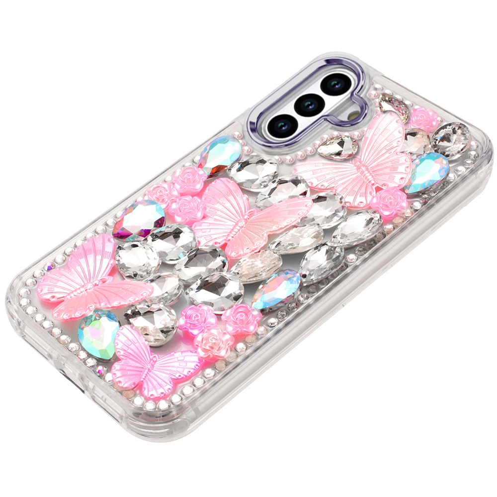 For Samsung s25 FE Lavished Floral Butterfly Bling Stones Hybrid Case - Purple
