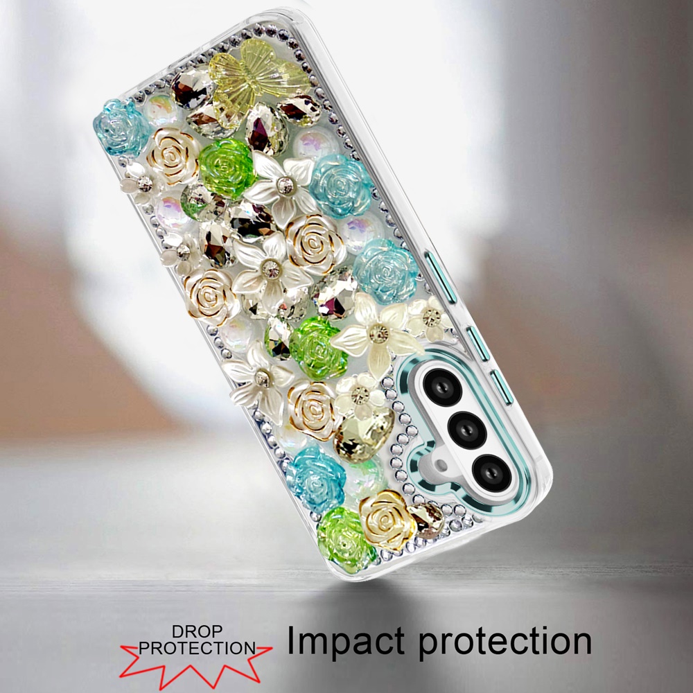 For Samsung s25 FE Muti-Color Rose Bling Stones Ornaments Case - Green