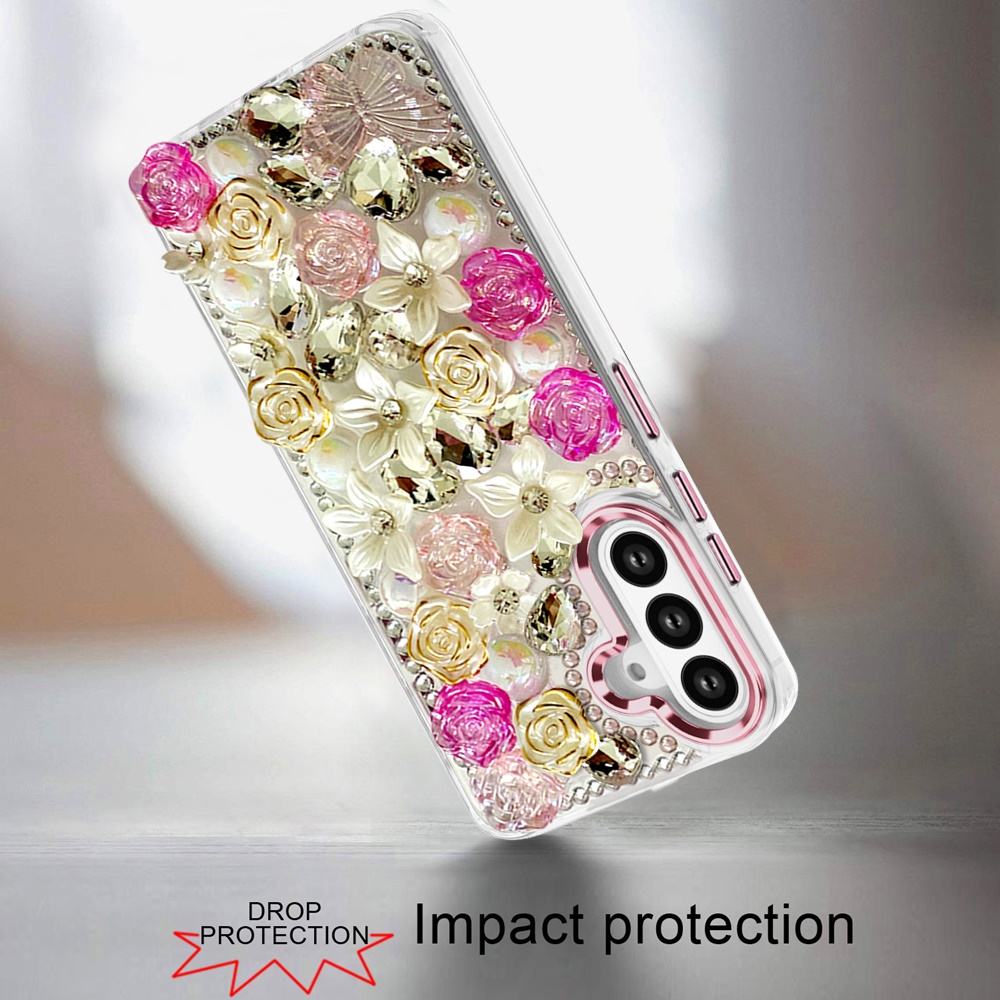 For Samsung s25 FE Muti-Color Rose Bling Stones Ornaments Case - Pink