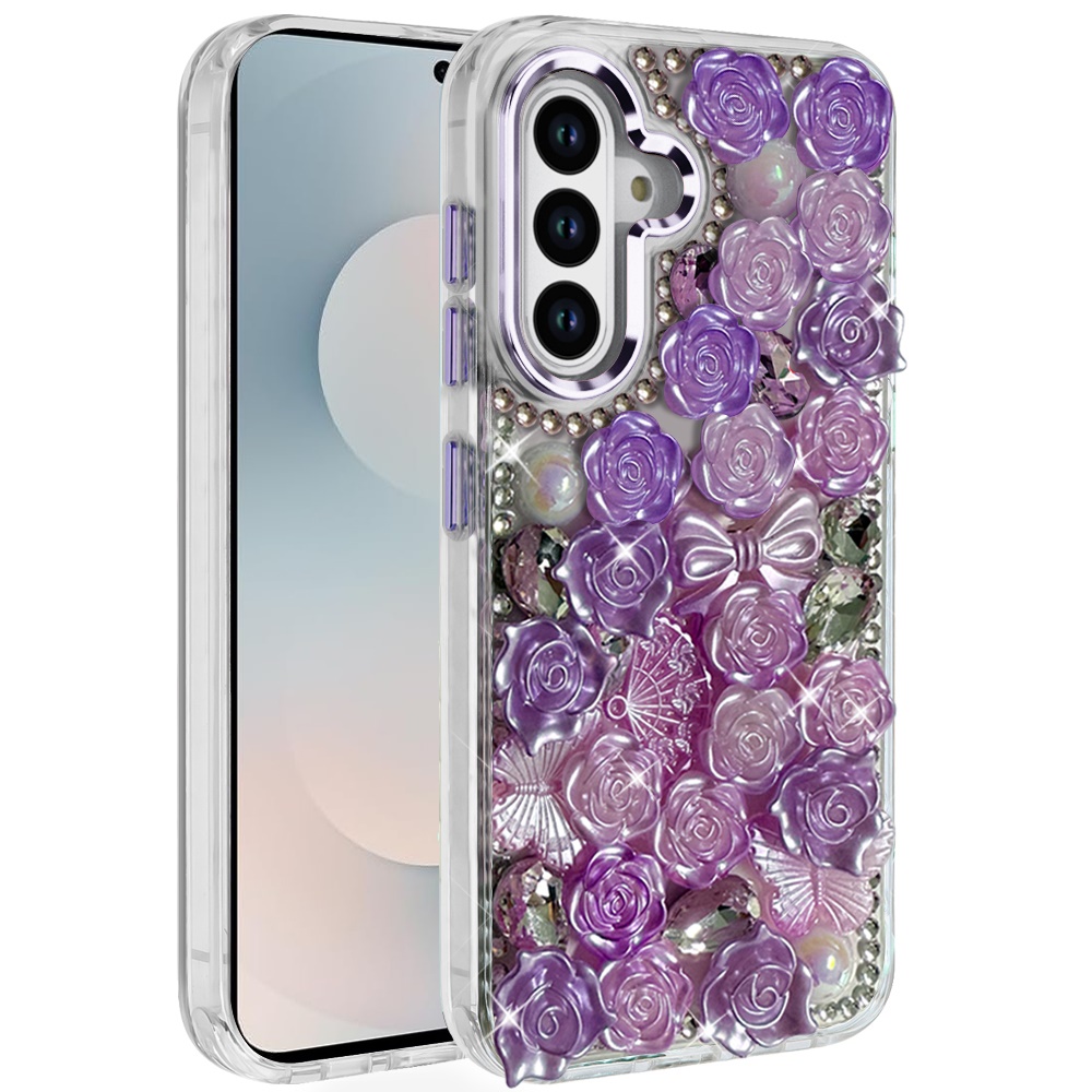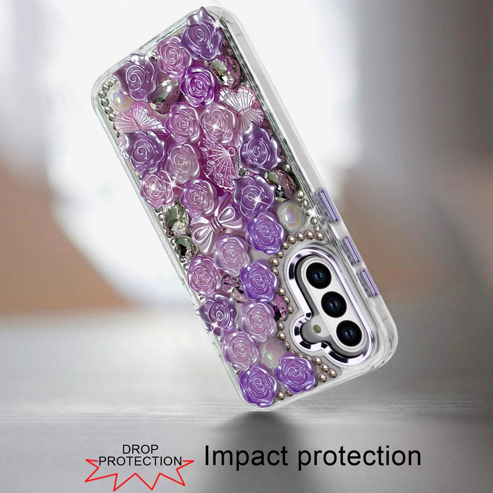 For Samsung s25 FE Muti-Color Floral Bling Stones Ornaments Case - Purple
