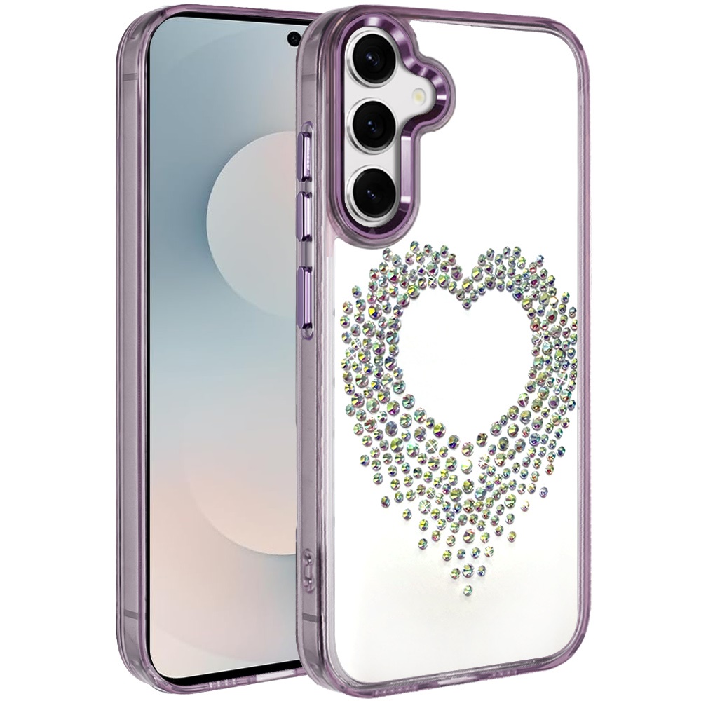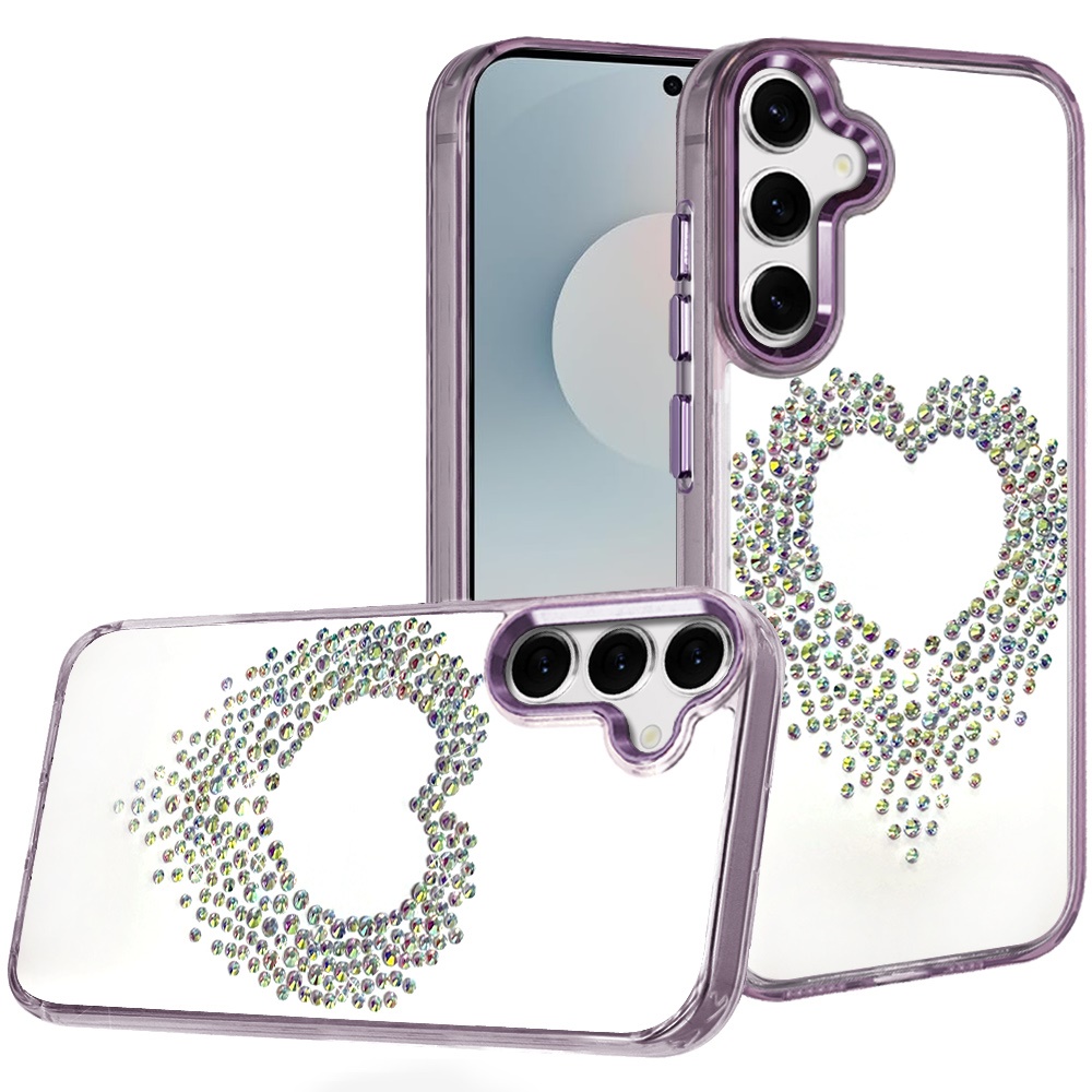 For Samsung s25 FE Angel Hearts Bling Shimmer Colorful Glitter Chrome Edged Hybrid Case - Purple