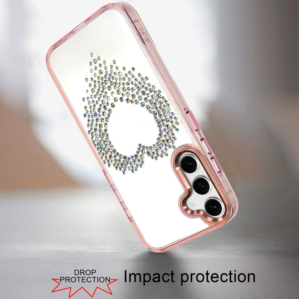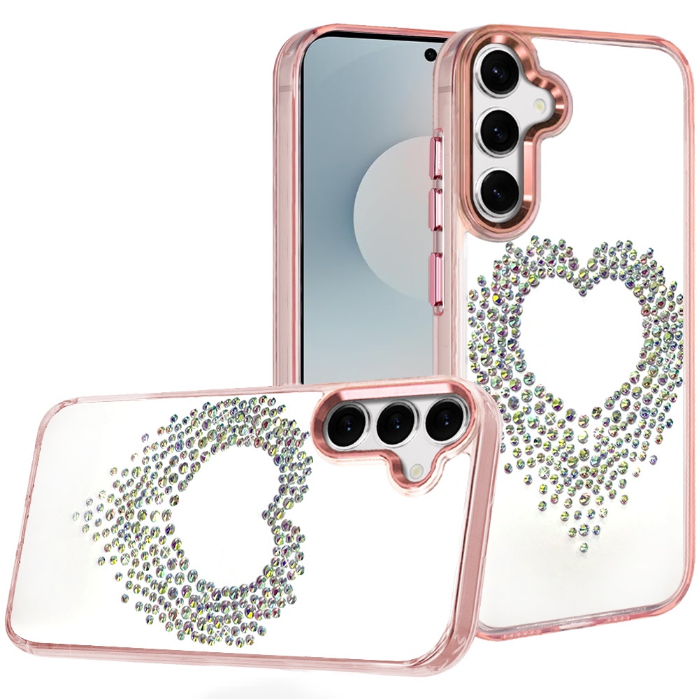 For Samsung s25 FE Angel Hearts Bling Shimmer Colorful Glitter Chrome Edged Hybrid Case - Rose Gold