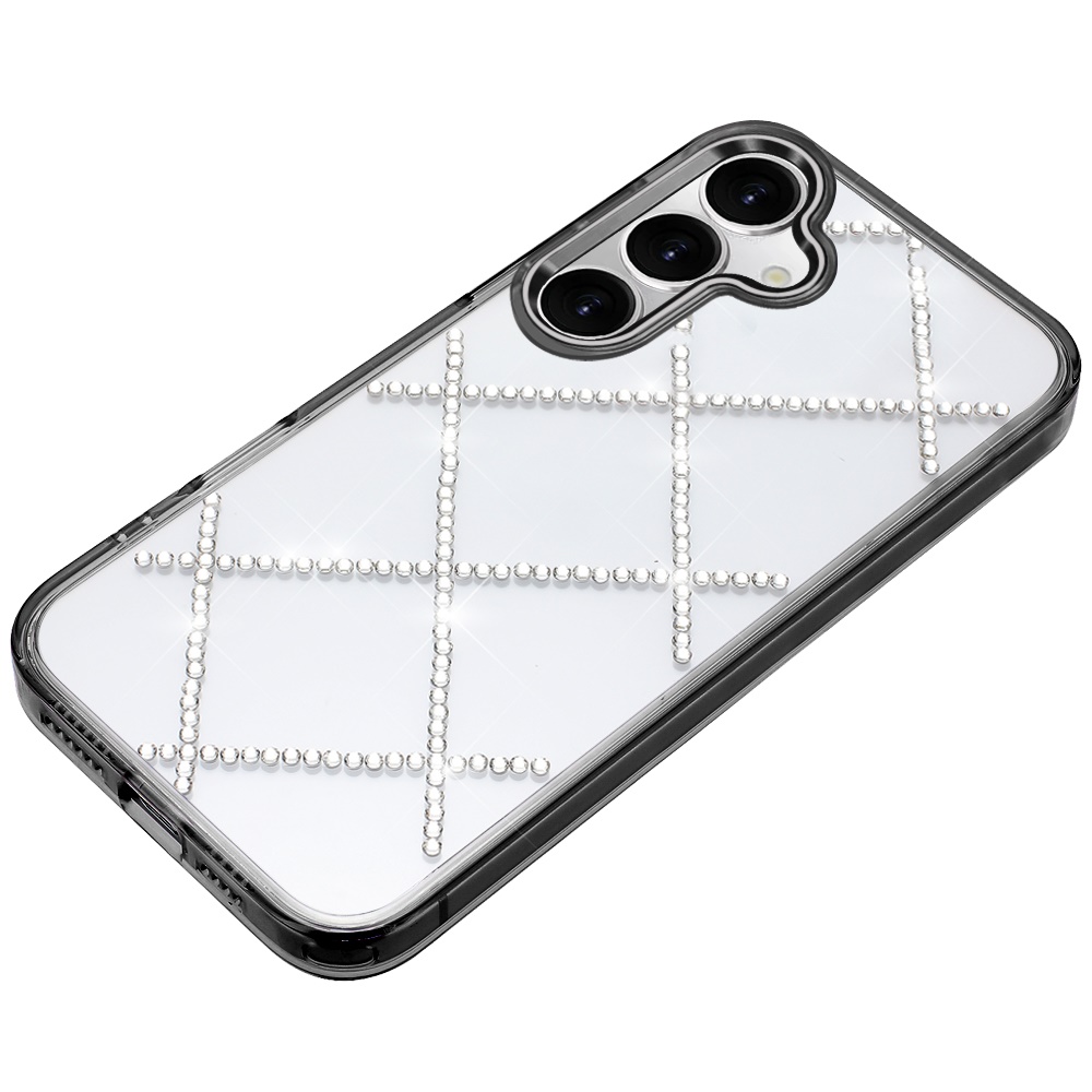For Samsung s25 FE Gem Glitter Diamond Transparent Hard Colorful TPU Hybrid Case - Black