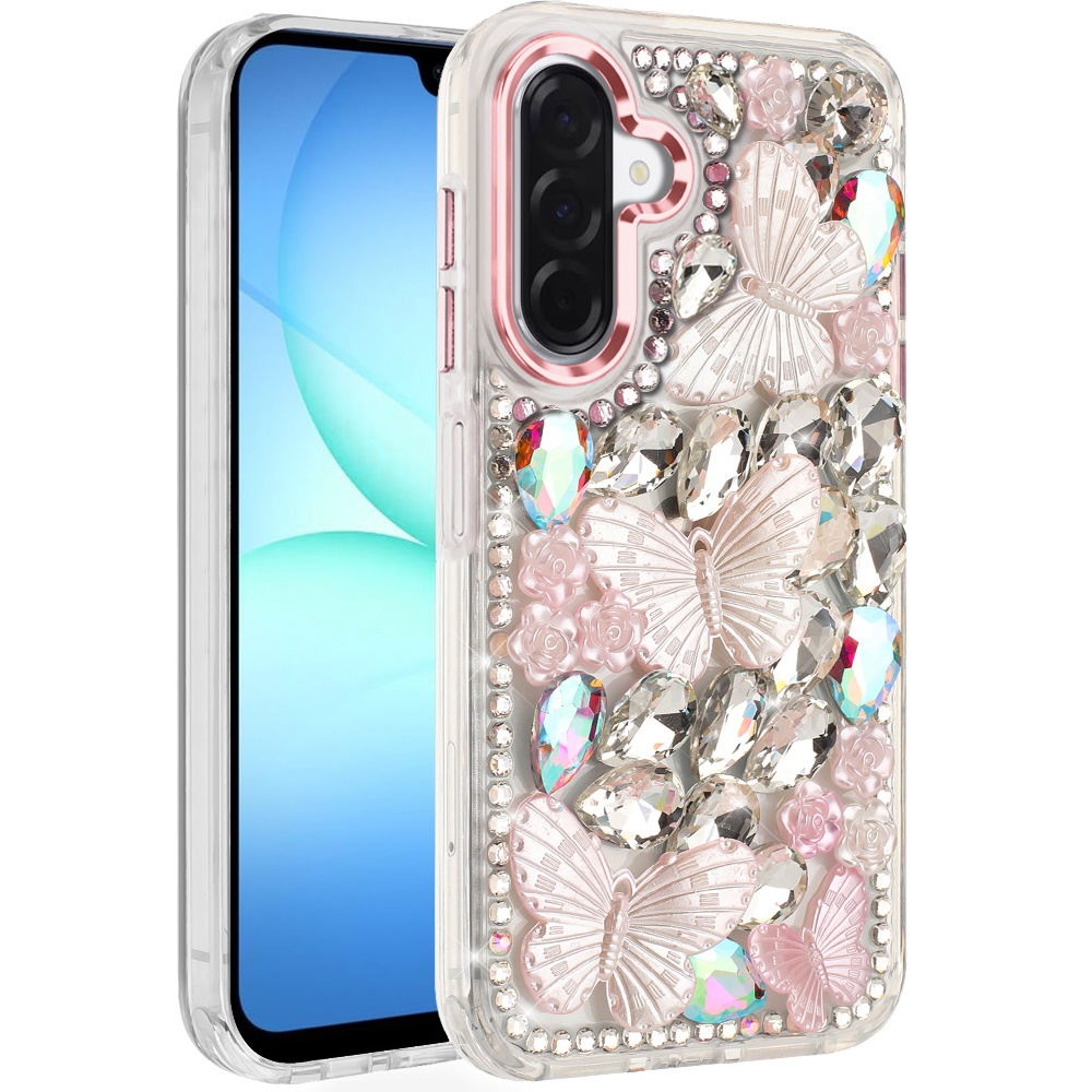 For Samsung A17 5G Lavished Floral Butterfly Bling Stones Hybrid Case - Pink