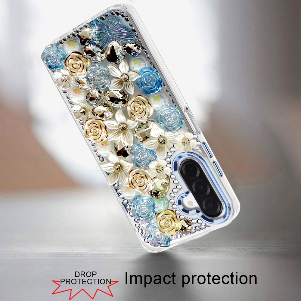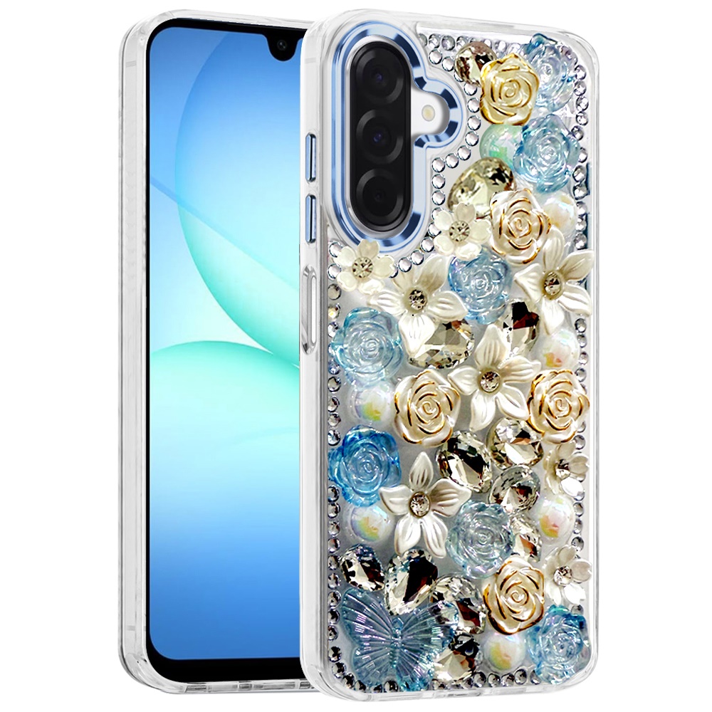 For Samsung A17 5G Muti-Color Rose Bling Stones Ornaments Case - Blue