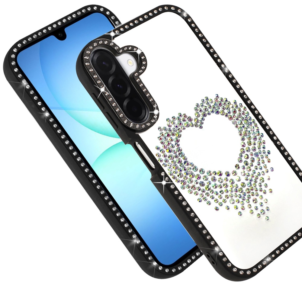 For Samsung A17 5G Beautiful ANGEL Hearts Glitter Shimmer Diamond Edged Hybrid Case - Black