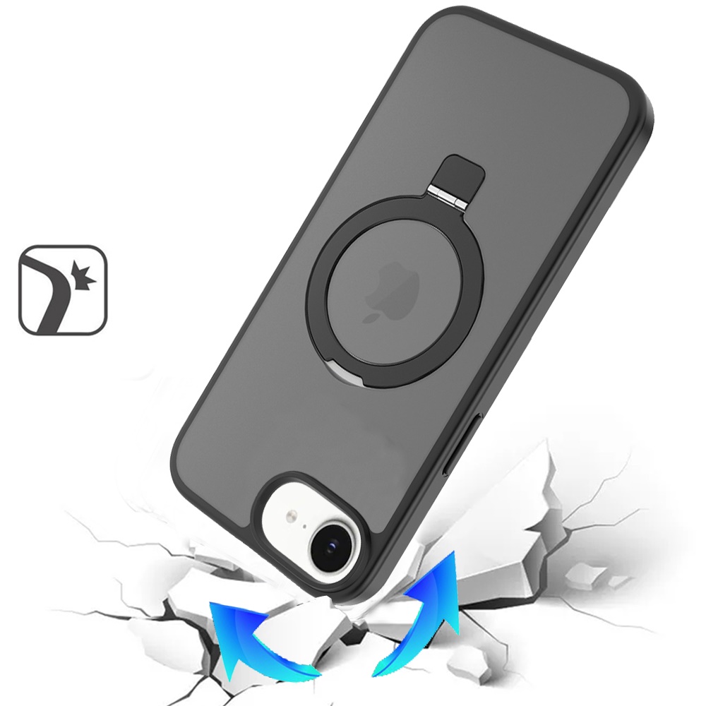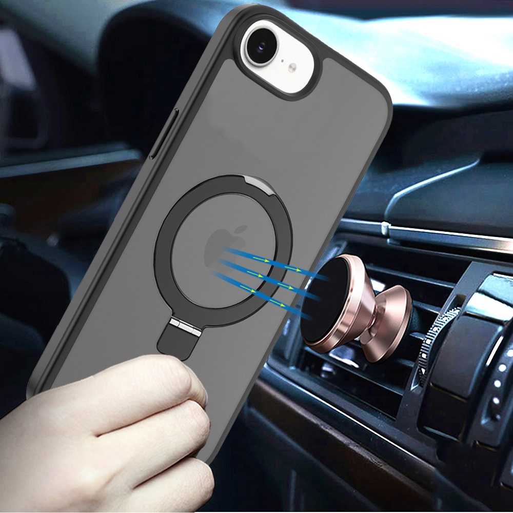 For iPhone SE 3 (2022) SE/8/7 Magnetic Matching Ring Stand Full Rotation Matte Hybrid - Black