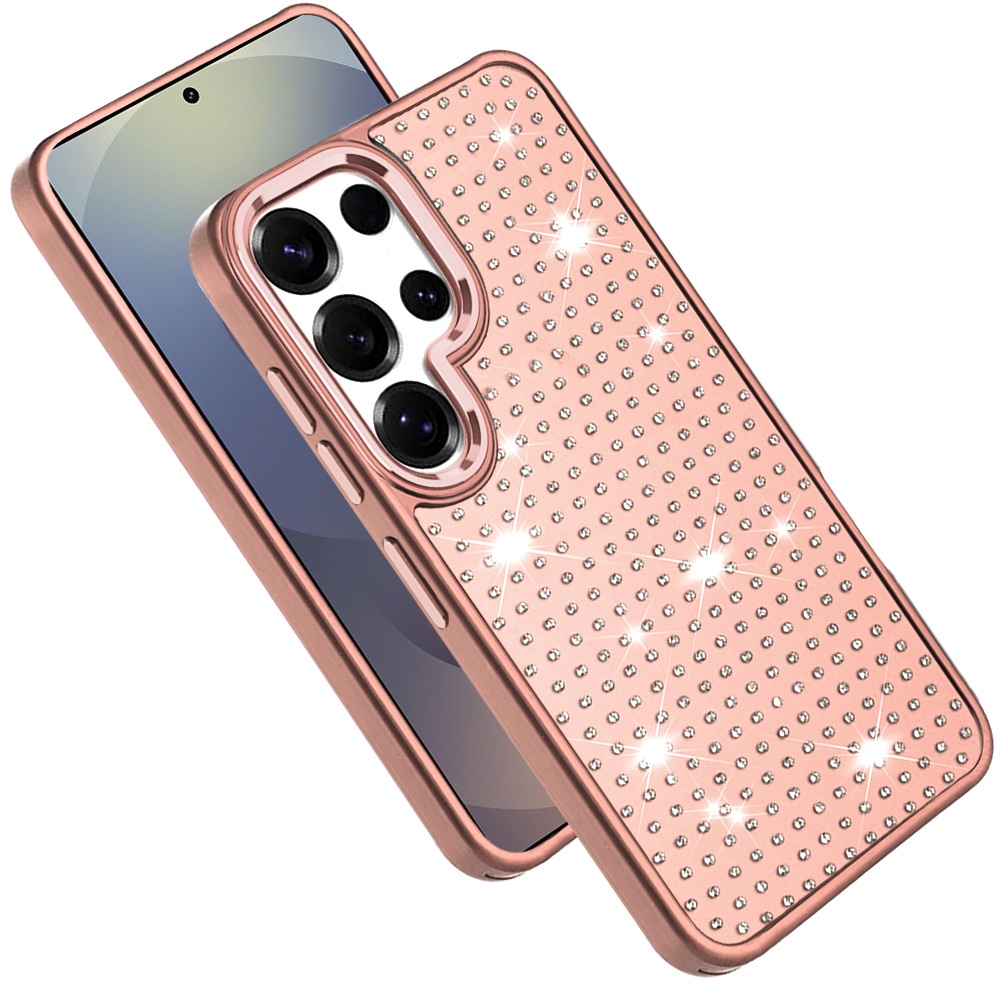 For Samsung s25 Ultra Beautiful Diamond Metallic Design Metal Chrome Edged Hybrid - Rose Gold