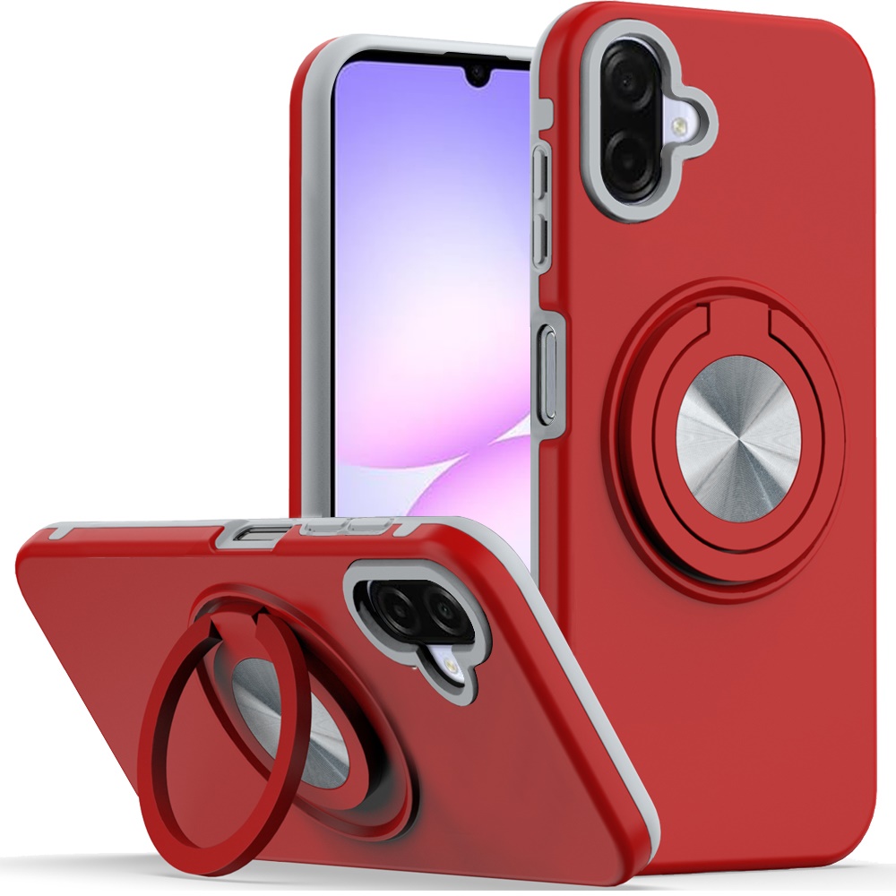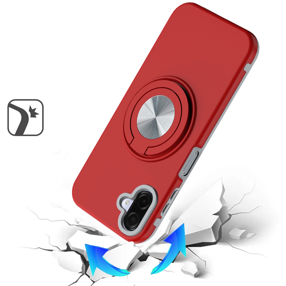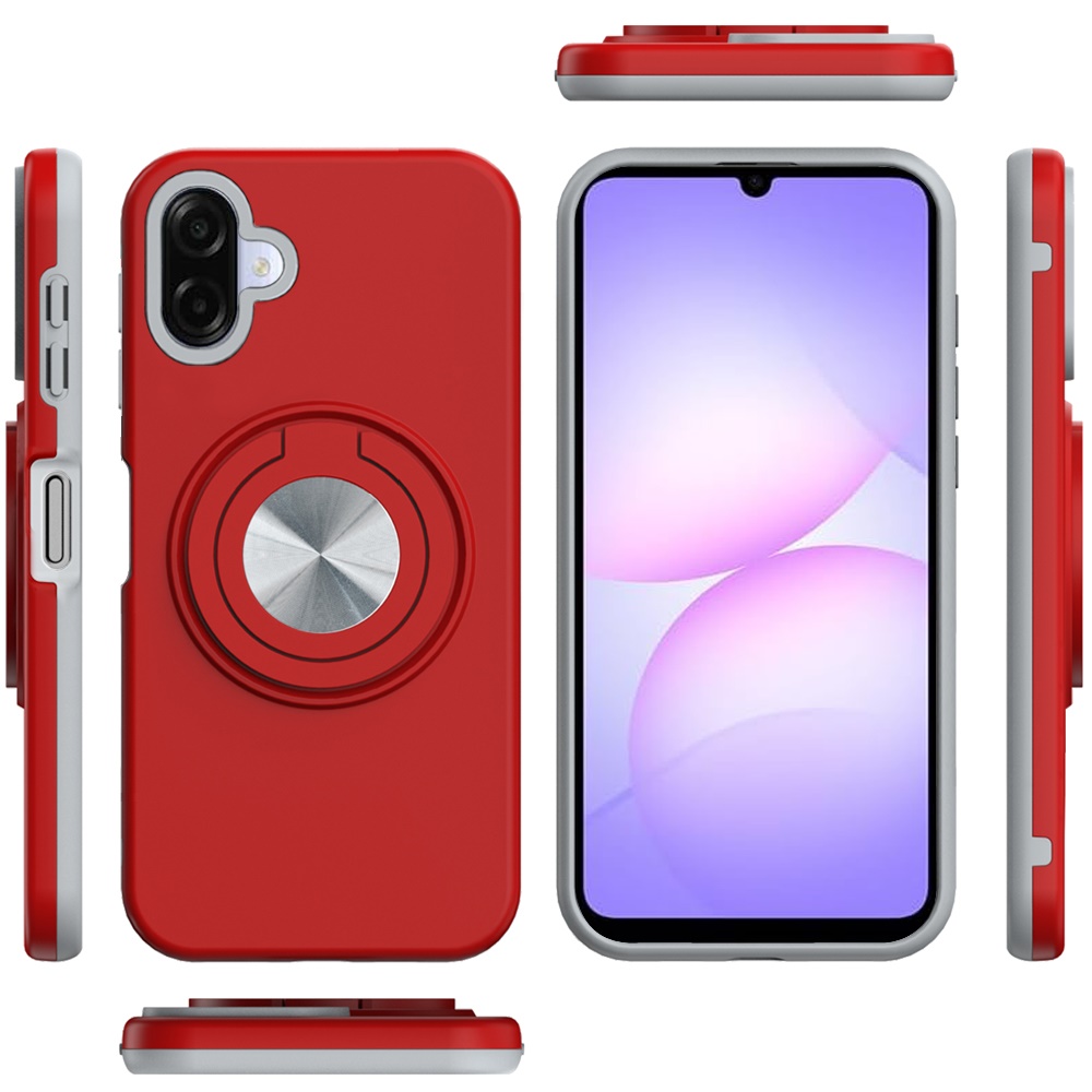 For Samsung Galaxy A07 Metal CD Pattern Matte Finished Hybrid with Rotational Ring [Car Mount Friendly] Case - Red