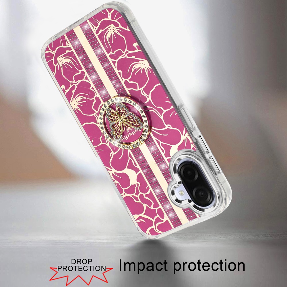 For Samsung Galaxy A07 Splendid Floral Designs with Metal Camera and Buttons with Butterfly Ring Stand Hybrid Case - Hot Pink