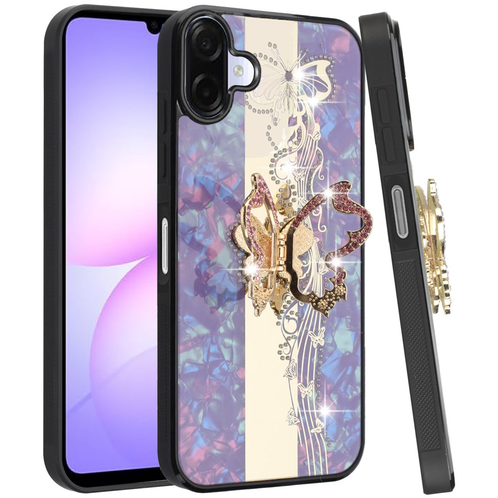 For Samsung Galaxy A07 SPLENDID Diamond Glitter Ornaments Engraving Case Cover - Enchanted Butterfly Purple