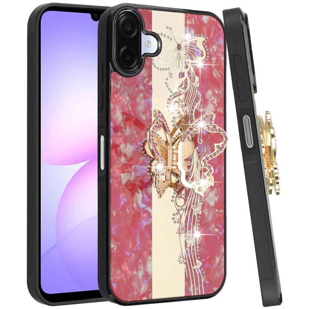 For Samsung Galaxy A07 SPLENDID Diamond Glitter Ornaments Engraving Case Cover - Enchanted Butterfly Red