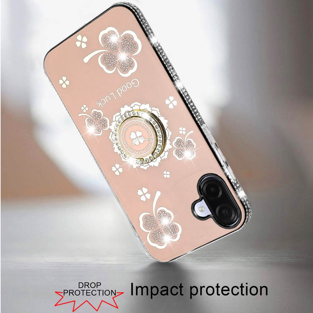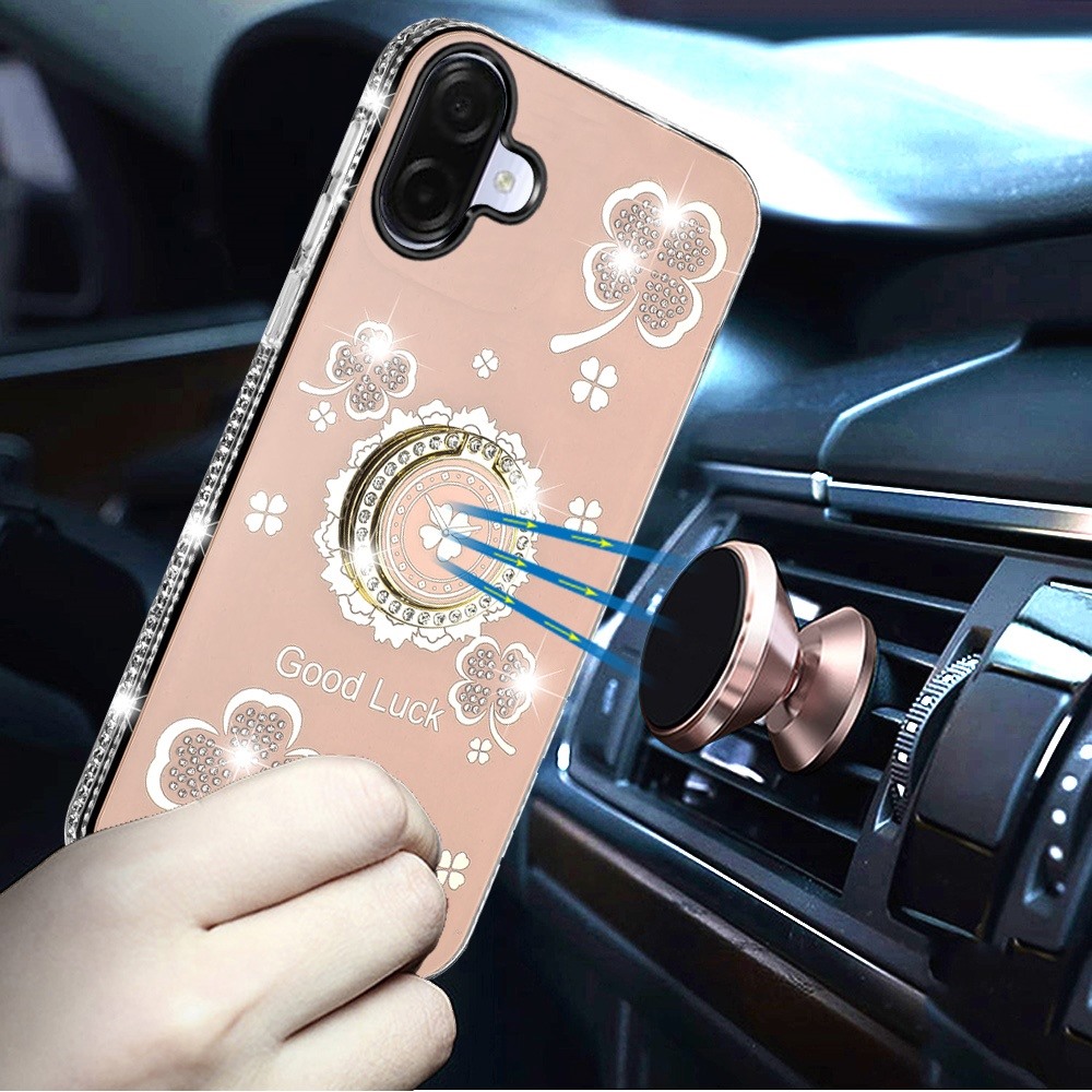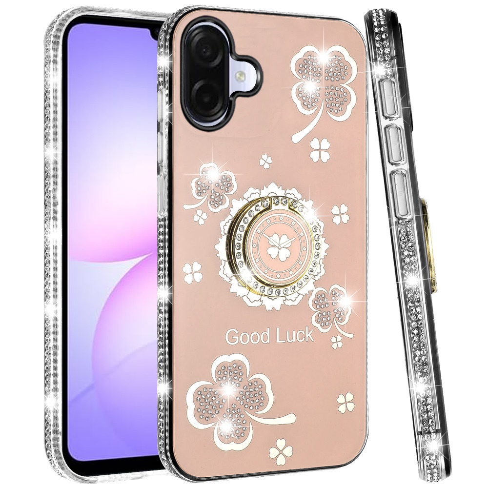 For Samsung Galaxy A07 Splendid Glitter with Diamonds All Around Edges Ring Stand Case Cover - Gold