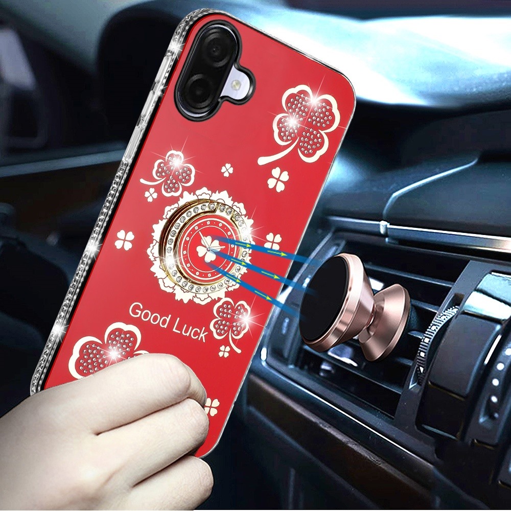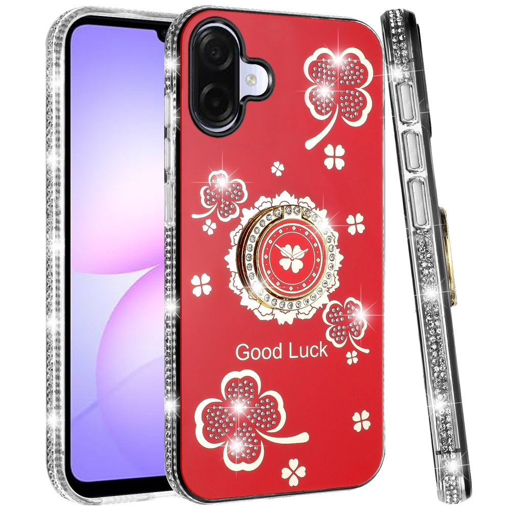 For Samsung Galaxy A07 Splendid Glitter with Diamonds All Around Edges Ring Stand Case Cover - Red