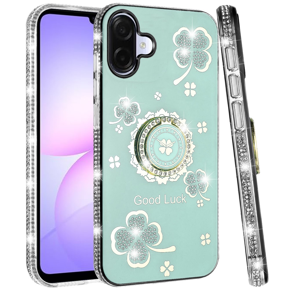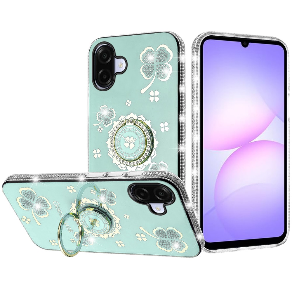 For Samsung Galaxy A07 Splendid Glitter with Diamonds All Around Edges Ring Stand Case Cover - Teal