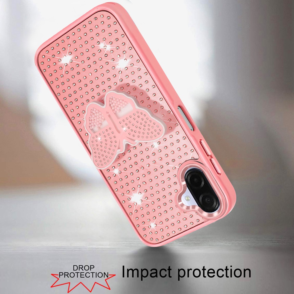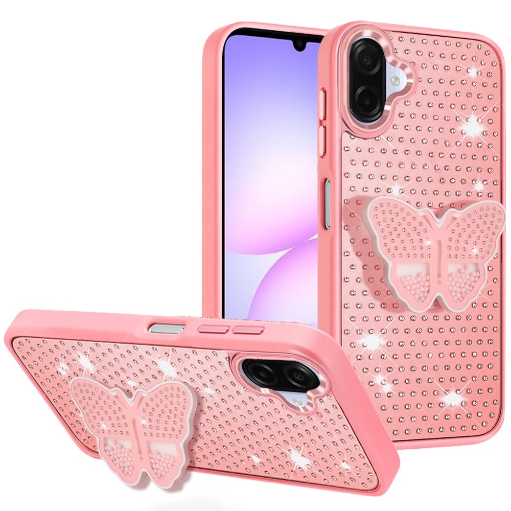 For Samsung Galaxy A07 Butterfly Moveable Grip Stand With Small Diamonds Meta Buttons HQ Hybrid - Pink