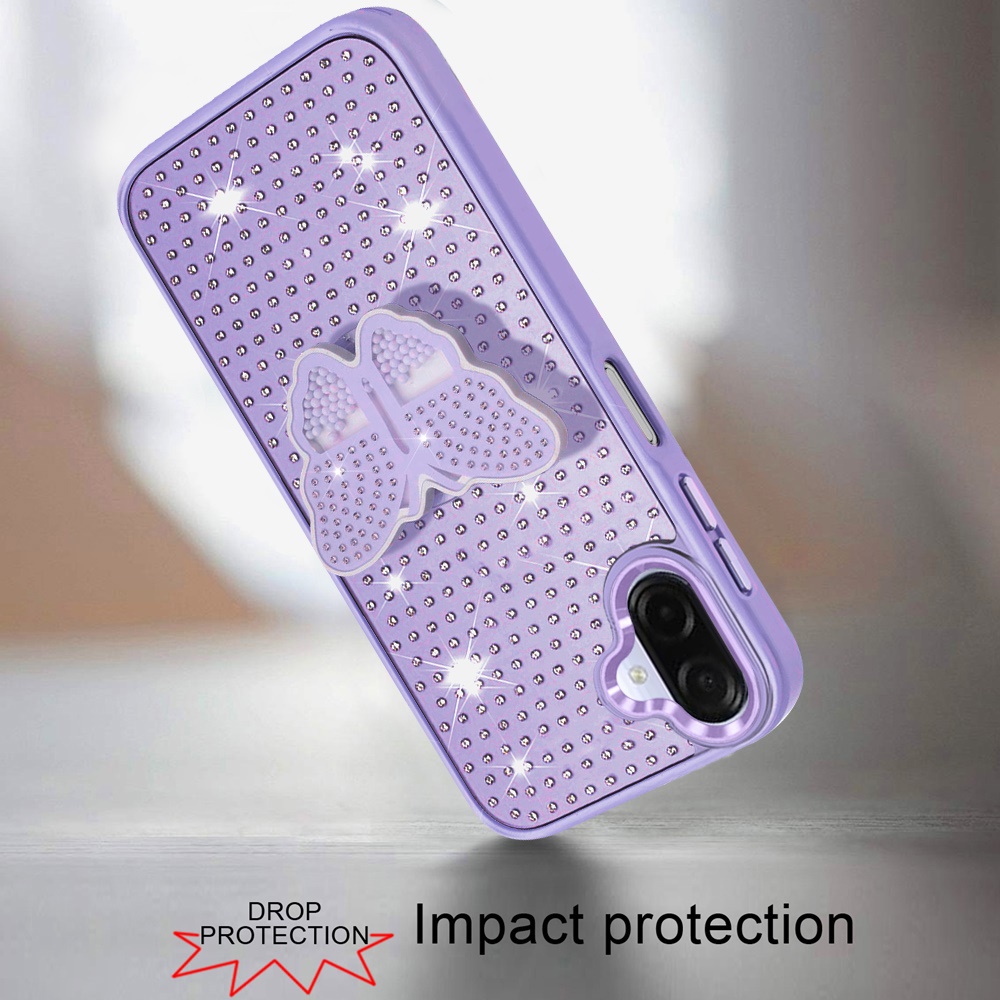 For Samsung Galaxy A07 Butterfly Moveable Grip Stand With Small Diamonds Meta Buttons HQ Hybrid - Purple