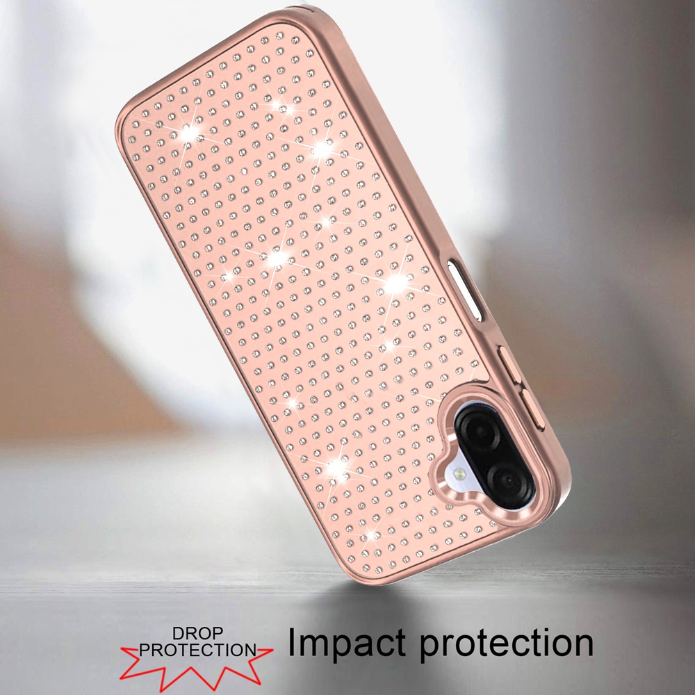 For Samsung Galaxy A07 Beautiful Diamond Metallic Design Metal Chrome Edged Hybrid - Rose Gold