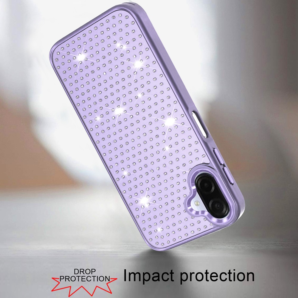 For Samsung Galaxy A07 Beautiful Diamond Metallic Design Metal Chrome Edged Hybrid - Purple