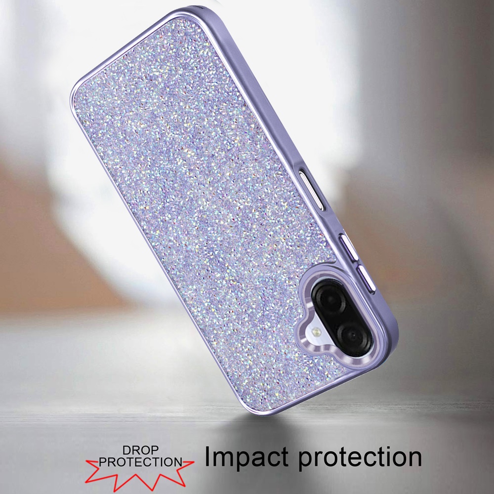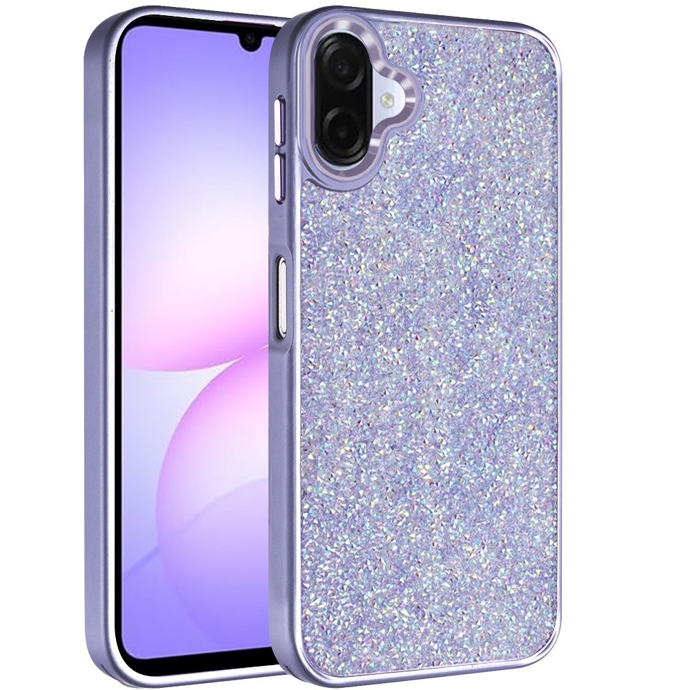 For Samsung Galaxy A07 Crystal Glass Diamond with Metallic Buttons and Edges Hybrid Case - Dark Purple