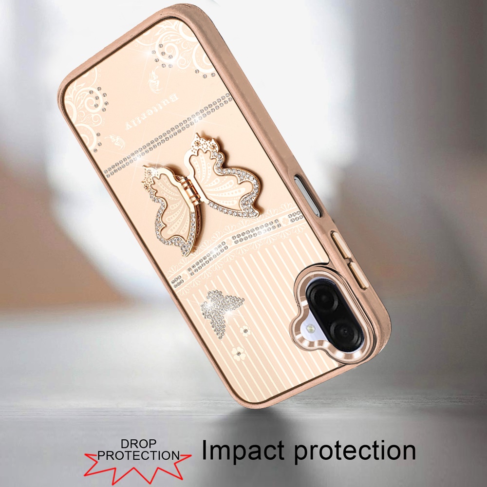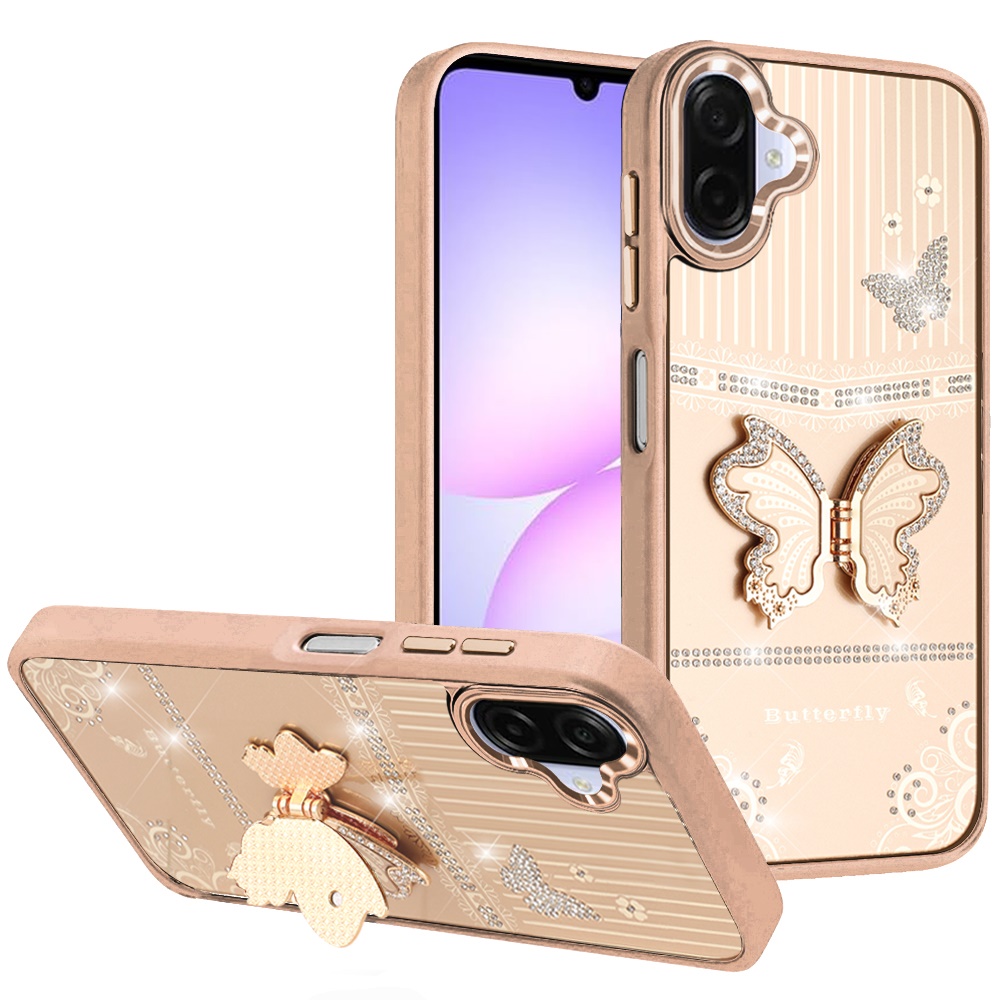 For Samsung Galaxy A07 Splendid Glitter Butterfly Design Stand with Metallic Edges Hybrid Case - Gold