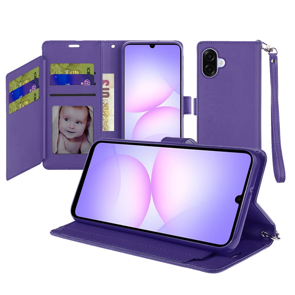 For Samsung Galaxy A07 Wallet ID Card Holder Case Cover - Dark Purple