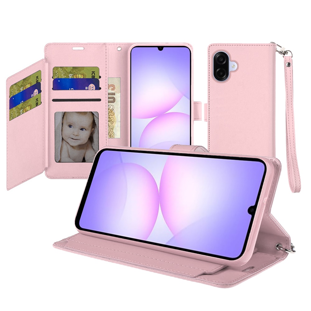 For Samsung Galaxy A07 Wallet ID Card Holder Case Cover - Rose Gold