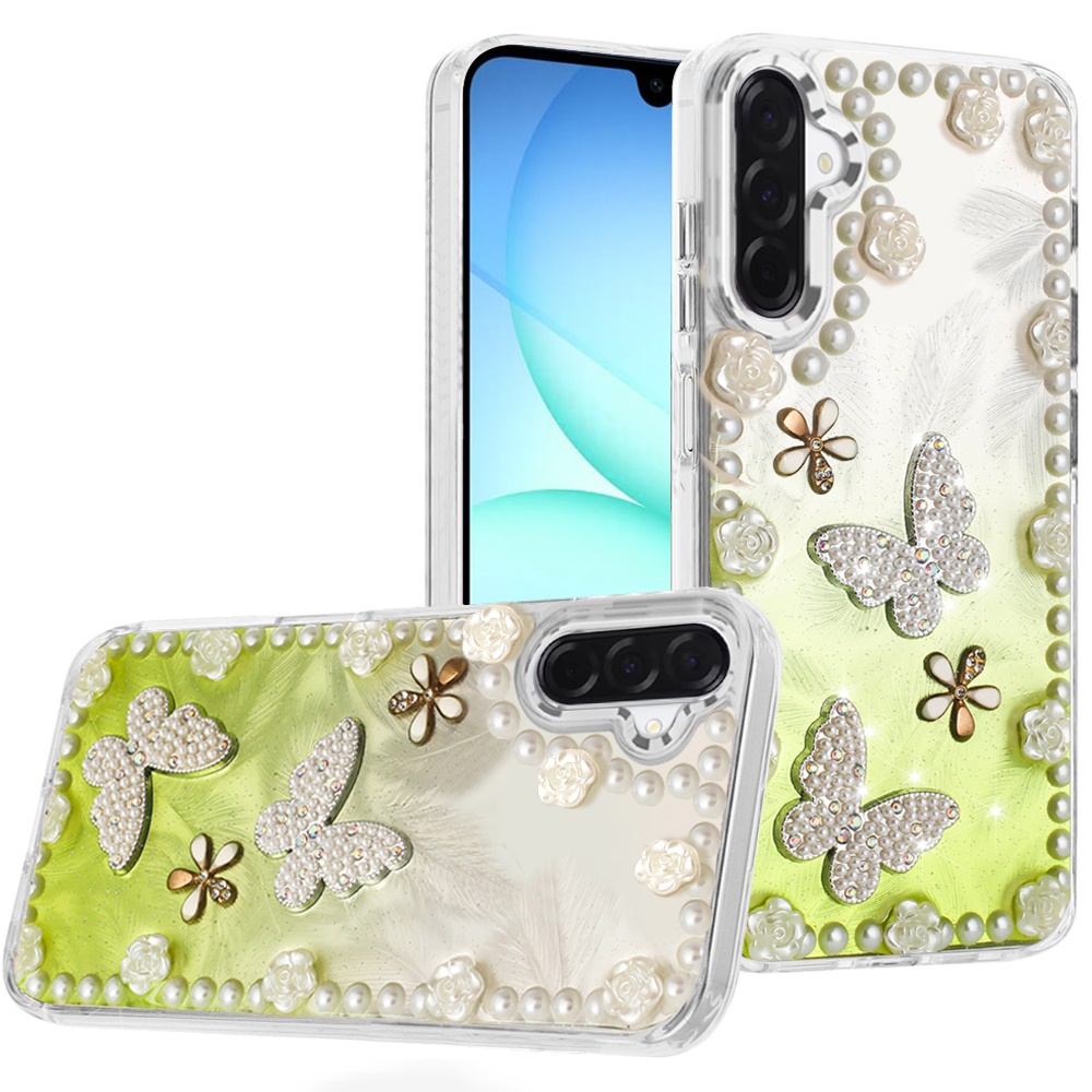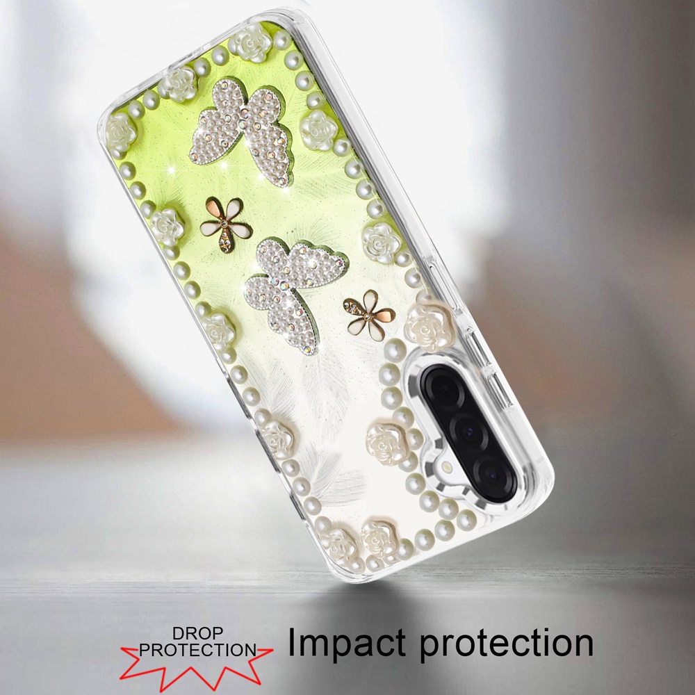 For Samsung A17 5G Pearls Epoxy Glitter Ornaments Design Chrome Edged Case - 1