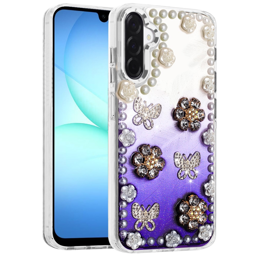 For Samsung A17 5G Pearls Epoxy Glitter Ornaments Design Chrome Edged Case - 3