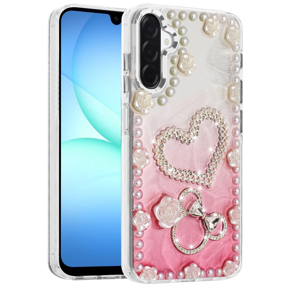 For Samsung A17 5G Pearls Epoxy Glitter Ornaments Design Chrome Edged Case - 10