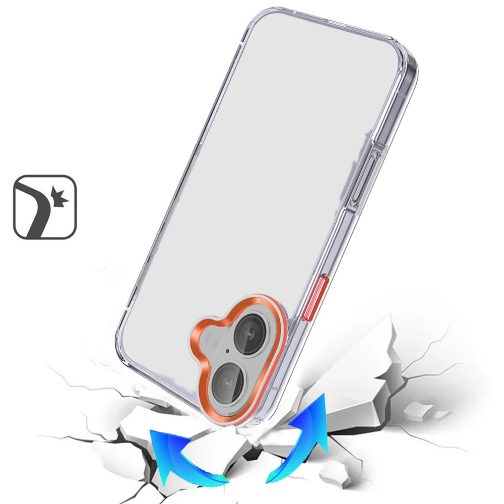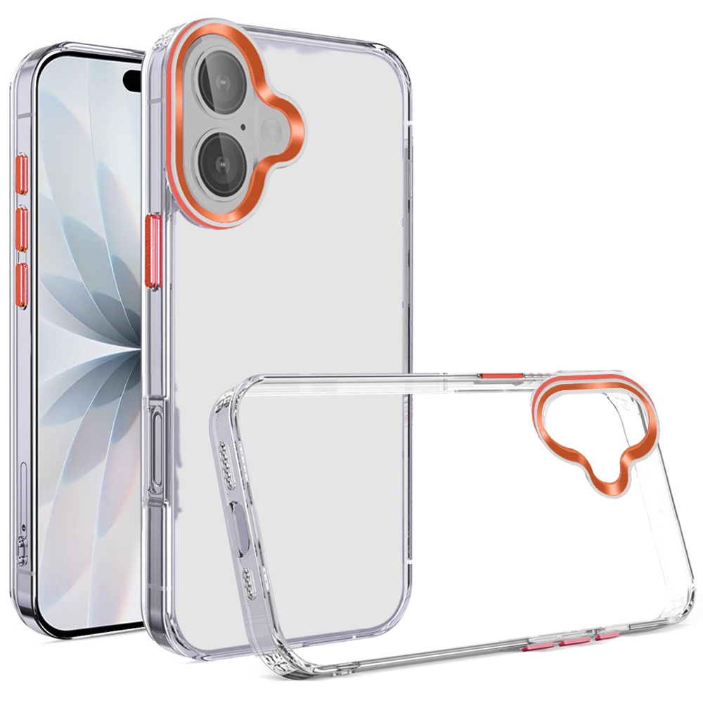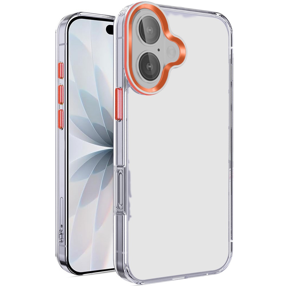 For iPhone 17 Transparent Clear Hybrid with Matching Metal Buttons and Camera Protection - Cosmic Orange