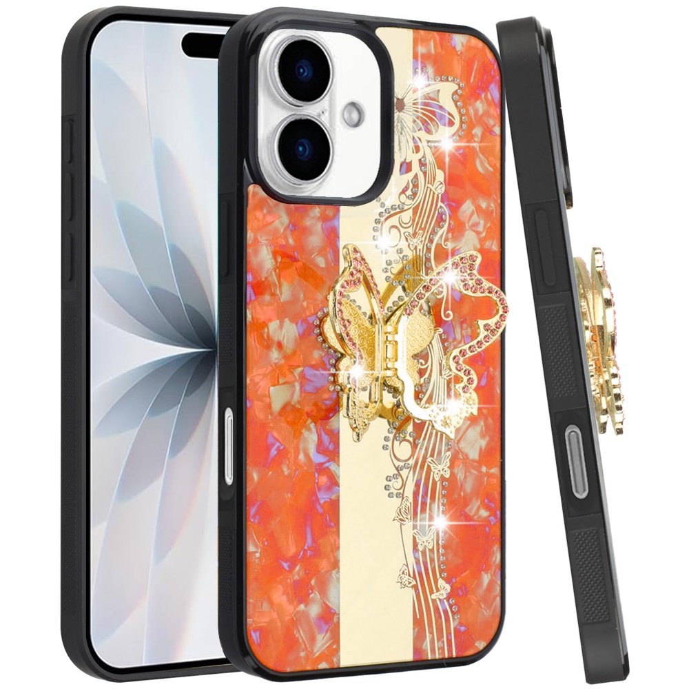 For iPhone 17 SPLENDID Diamond Glitter Ornaments Engraving Case Cover - Enchanted Butterfly Cosmic Orange